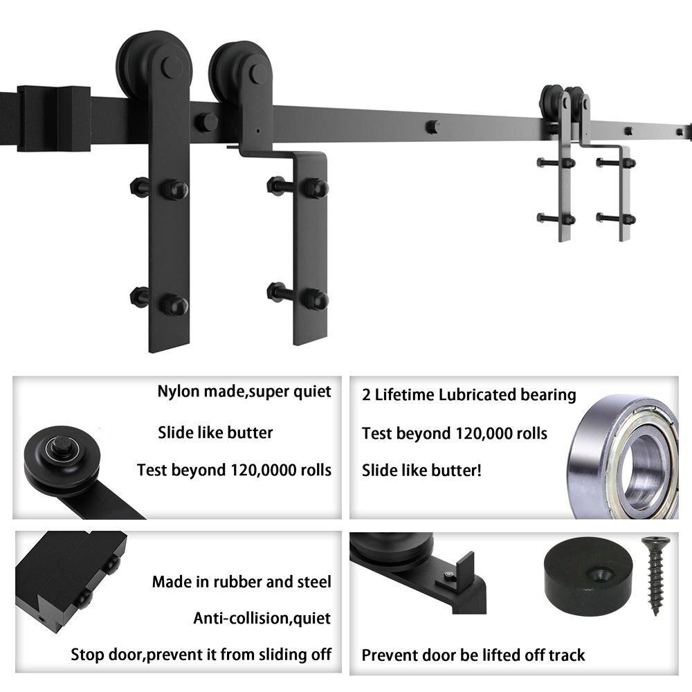 High standard premium quality carbon steels is applied to create most sturdy barn door hardware kit