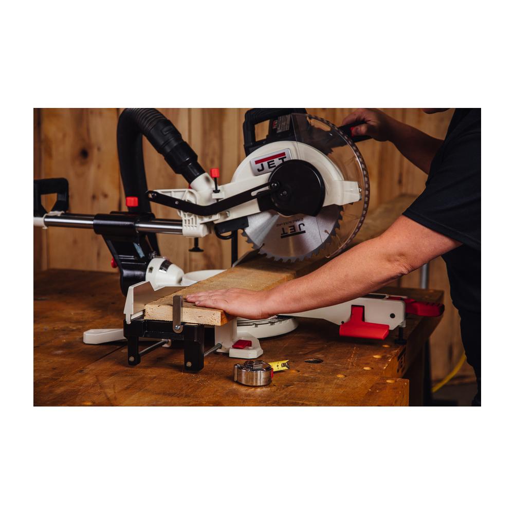 The new JET dual bevel sliding compound miter saw is 1 the most versatile saws in your shop. Efficiently cut miters, bevels, straights and compounds with precision and accuracy over a hand saw. A workhorse in your shop that is also portable enough to take with you when you need a great saw on the job.
