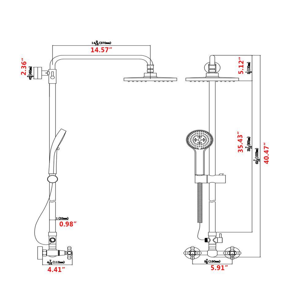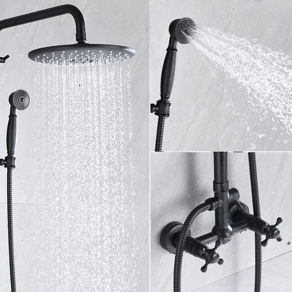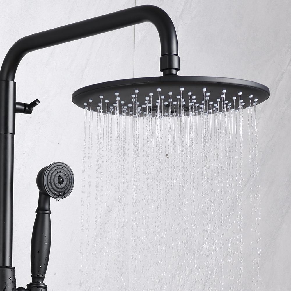 [Dual Function]:Overhead rainfall shower and hand held spray.Solid brass diverter switches between top shower and hand spray. Simple and classic single handle shower faucet control hot and cold water.