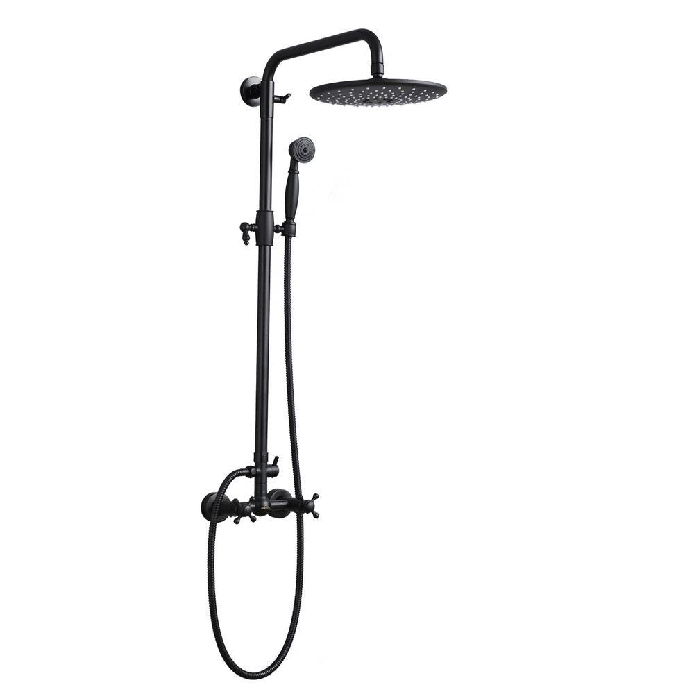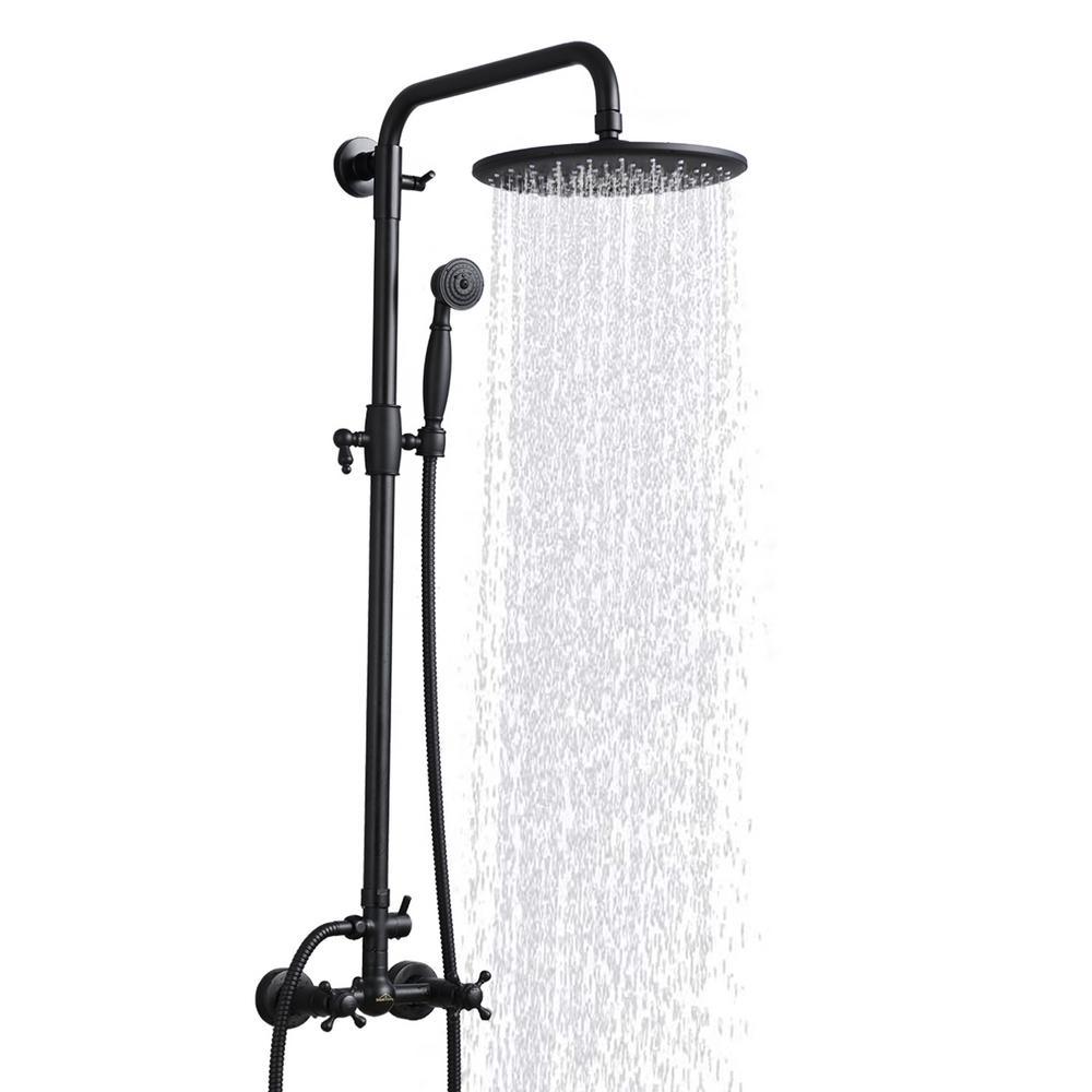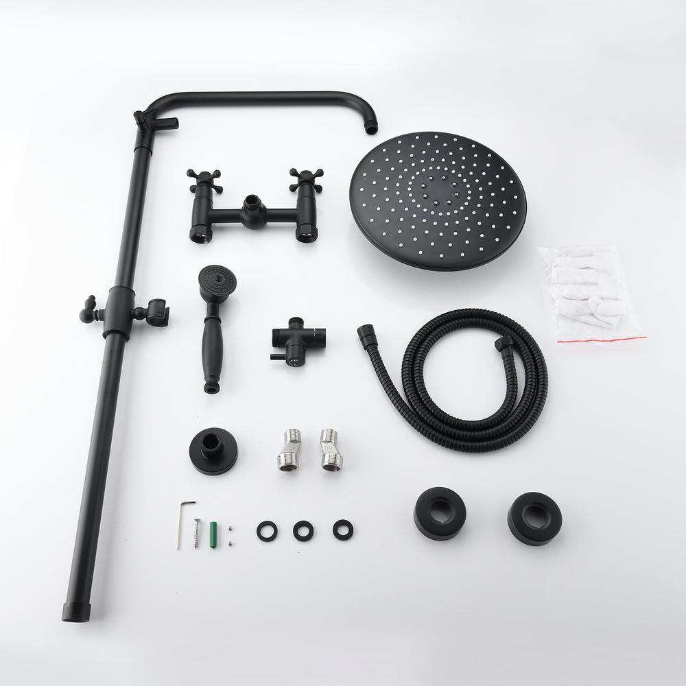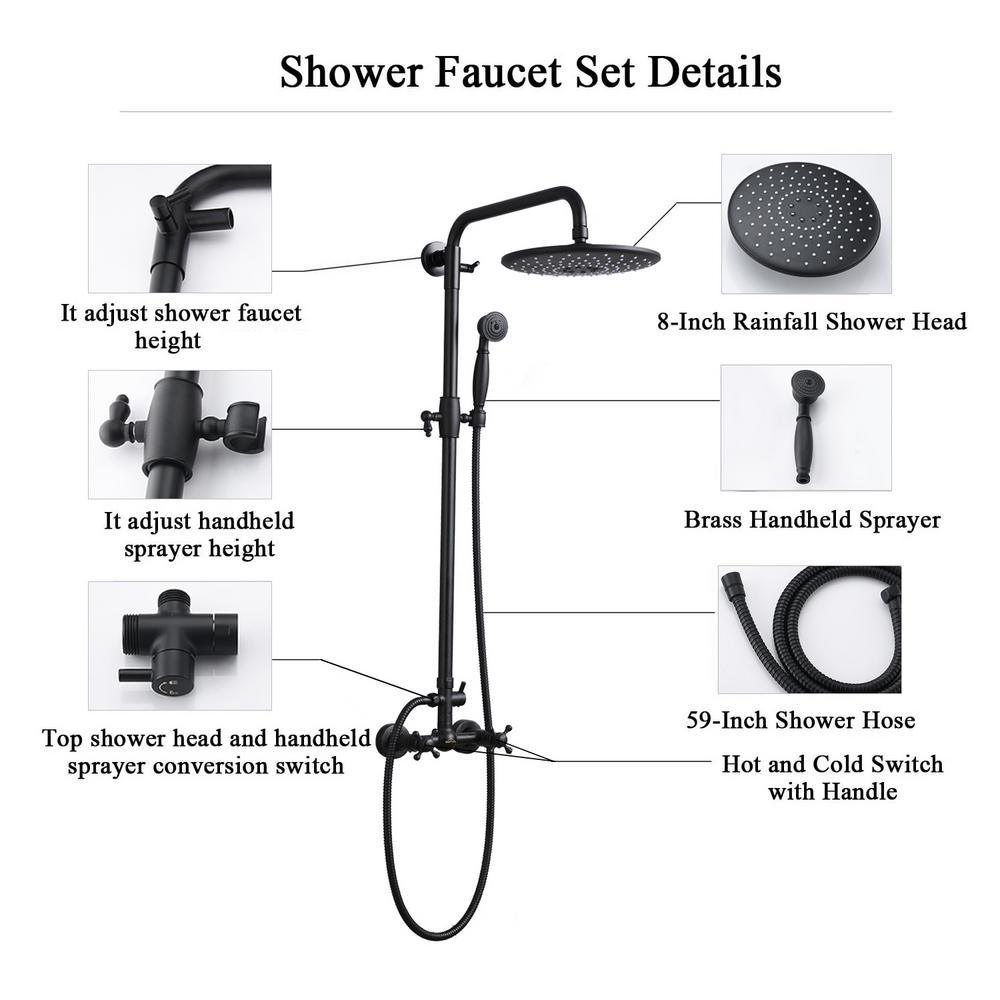 [Dual Function]:Overhead rainfall shower and hand held spray.Solid brass diverter switches between top shower and hand spray. Simple and classic single handle shower faucet control hot and cold water.