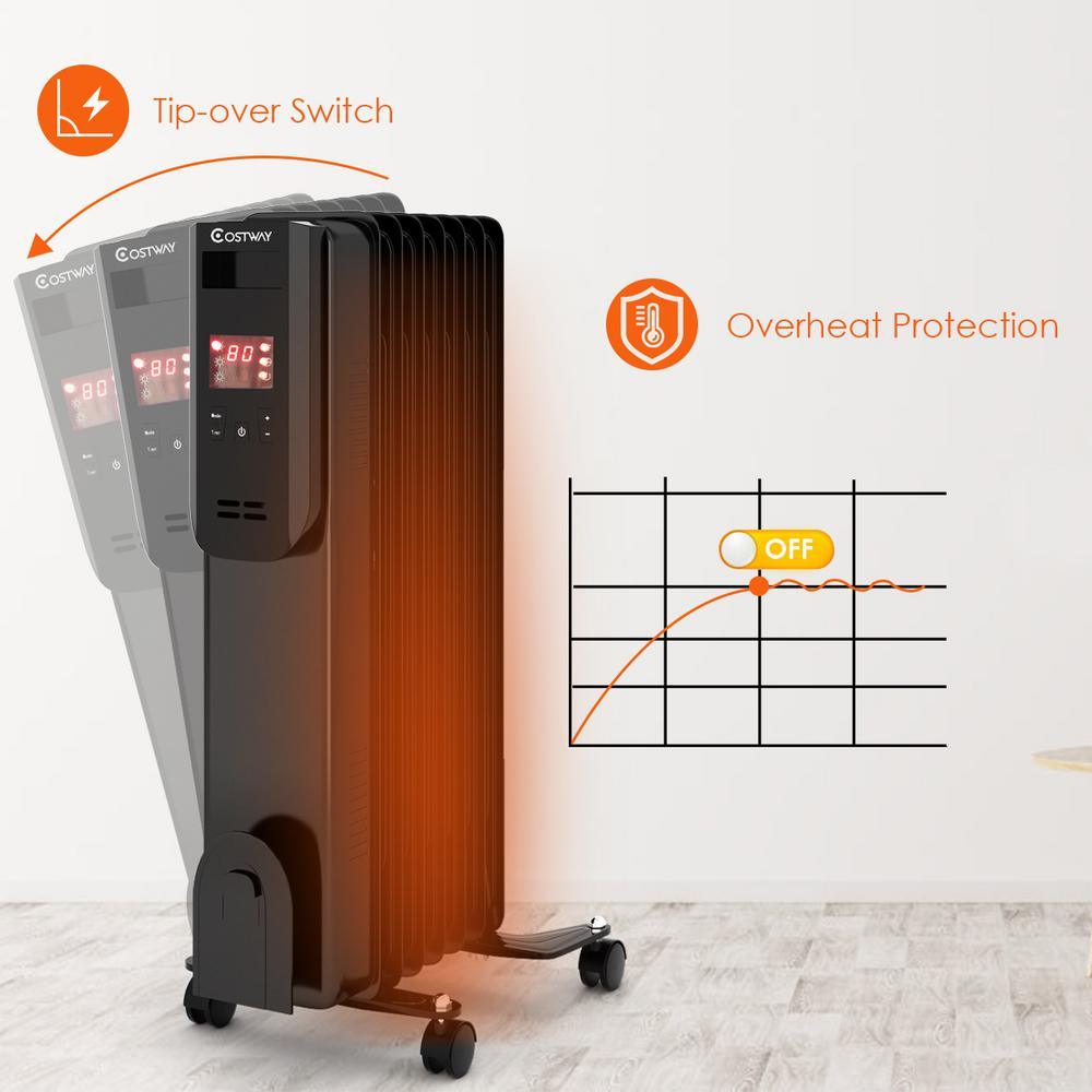 Energy-saving heater with 7 oil-filled thermal efficiently heats up your room quickly