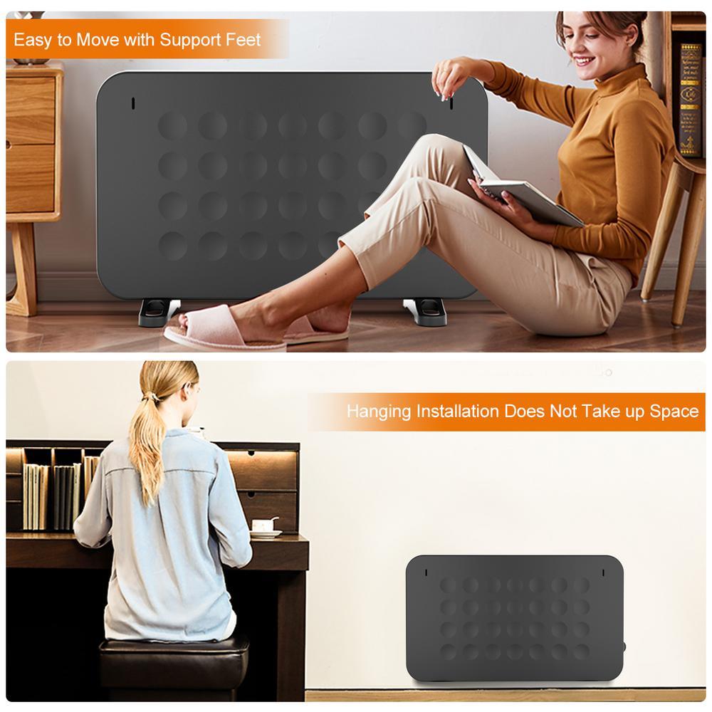 Our heater will improve your quality of life by creating a warm and comfortable atmosphere for your family. The unique circular concave design maximizes the heating surface for faster heating. And it has an adjustable temperature control knob and 2 heating settings to suit your different needs. The heater's 1500-Watt of power can stay warm and comfortable almost anywhere. The detachable thickened bases ensure that the heater stands firmly and is not easily kicked. You can also hang the heater on the wall to save space. Double overheat protection device protects your safety during use. It heats the entire room evenly with no sound at all without disturbing your sweet dreams. And it does not consume moisture from the air, so you won't feel dry. The sleek metallic look that looks good in any room in your home or office. This is a good opportunity that you can't miss.
