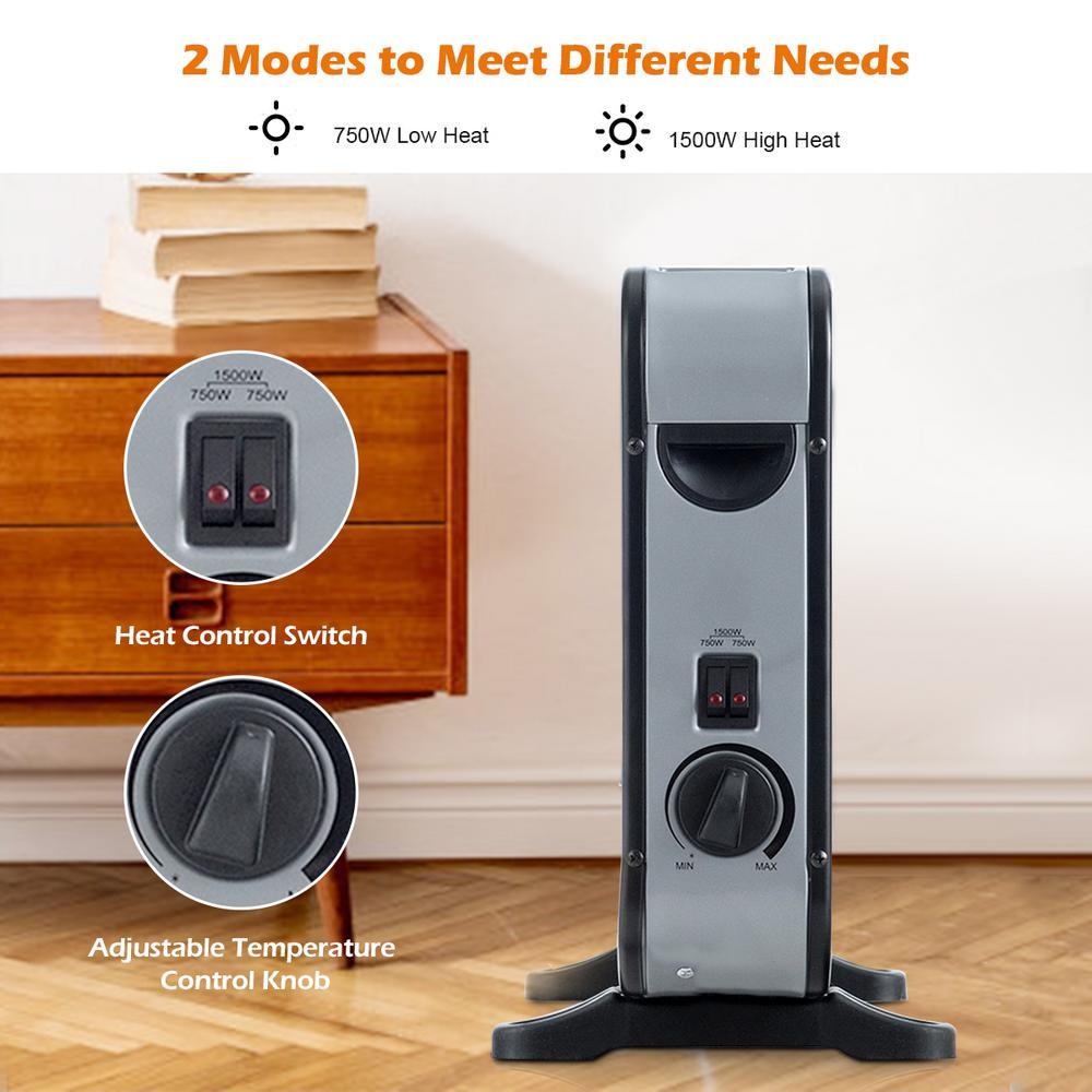 Heater offers 2 heating options for you to choose from: 750-Watt or 1,500-Watt
