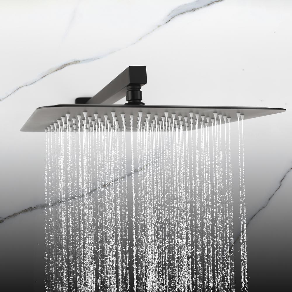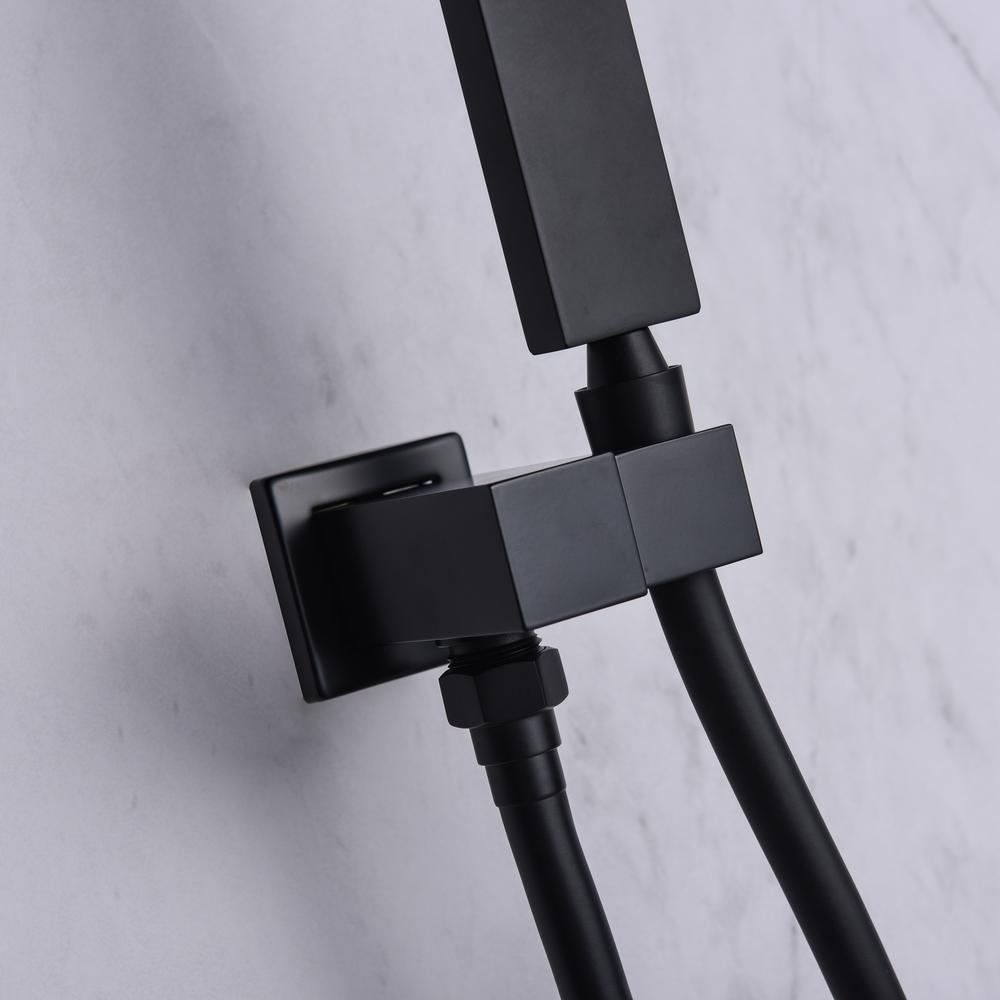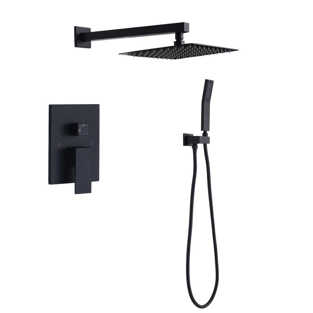 - What You Get -- All parts of the rain shower set are made of high-quality materials with professional technology. Those parts include 10-inch square rainfall shower head, handheld shower head, 15-inch shower arm, shower holder, pre-embedded valve, and 60-inch shower hose. The matte black finish and brass combination offers anti- corrosion and classical looking.