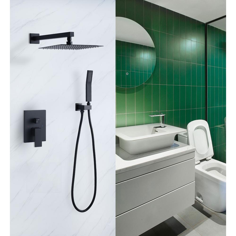- Package includes: 1.10-inch square shower head; 2. 60-inch Shower Hose; 3. Pre-embedded Valve; 4.Handheld Shower head; 5.Tub Spout; 6.15-inch Shower Head Arm; 7.Shower Valve Plate; 8.Shower lever handle; 9.Shower Bracket Holder; 10.Instruction Manual and Mounting accessories