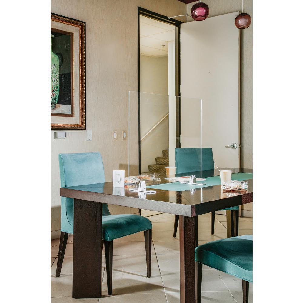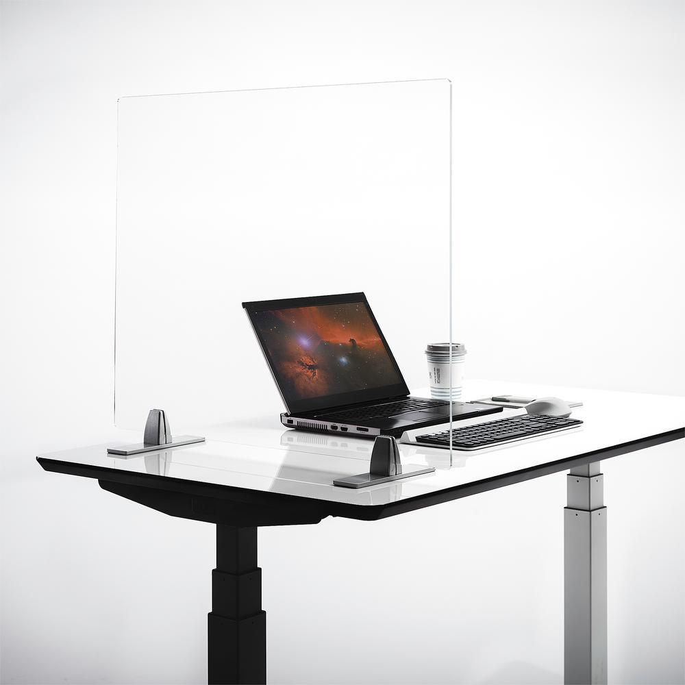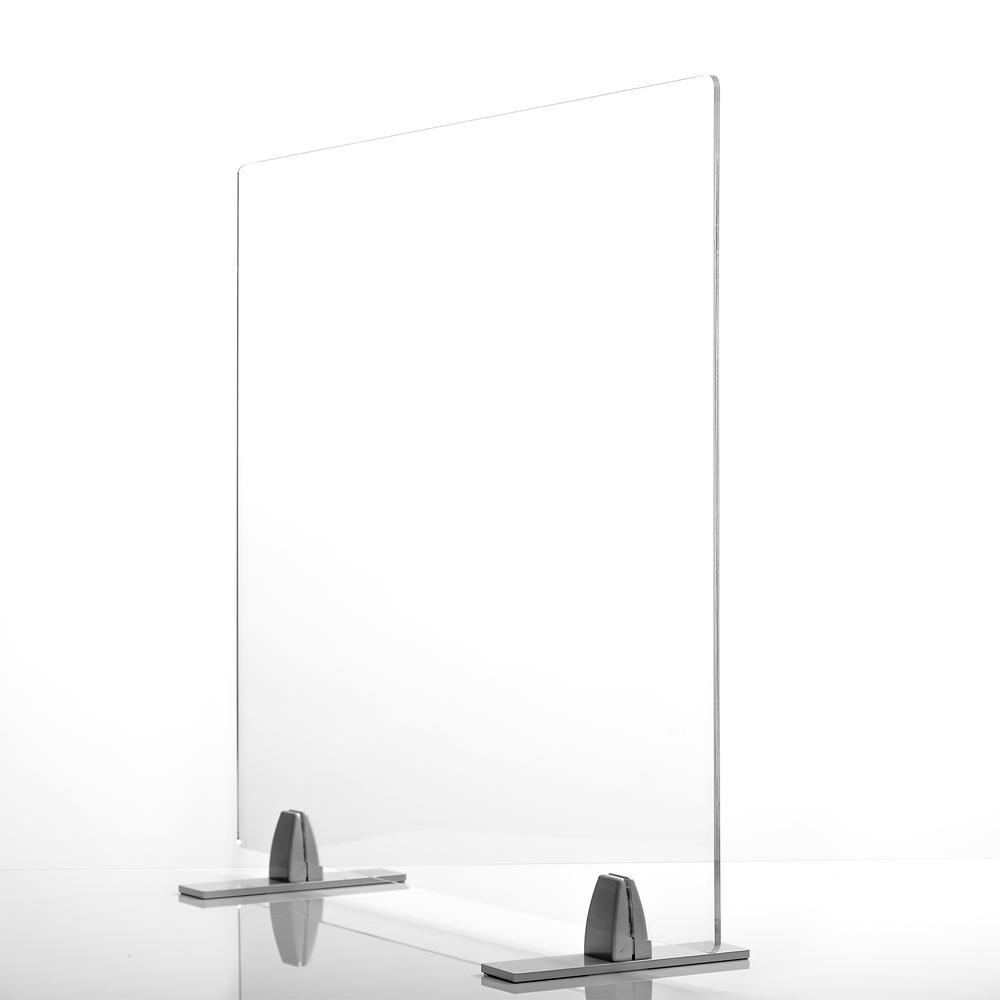 Protect your business, classroom or home with Seville Classics UltraShield Acrylic Tabletop Protective Sneeze Shield. This thick acrylic panel is designed for professional use on desks, countertops, tables and more. The rectangular panel is 30 inches long and 24 inches wide, making it a great option at cash registers and cubicles. It's made of thick (5 mm) transparent acrylic for an impact-resistant, crystal-clear window that's easy to clean. Use the shield vertically or horizontally with the clamp-on aluminum feet. The feet raise the shield allowing for a small gap below that's perfect as a transaction window for exchanging documents or cash. Non-slip padding at the bottom prevents the shield from sliding on slick surfaces when bumped or nudged. Assembly is easy with detailed instructions included. Outfit your business today with heavy-duty protection from Seville Classics.