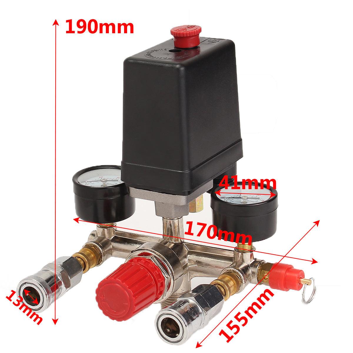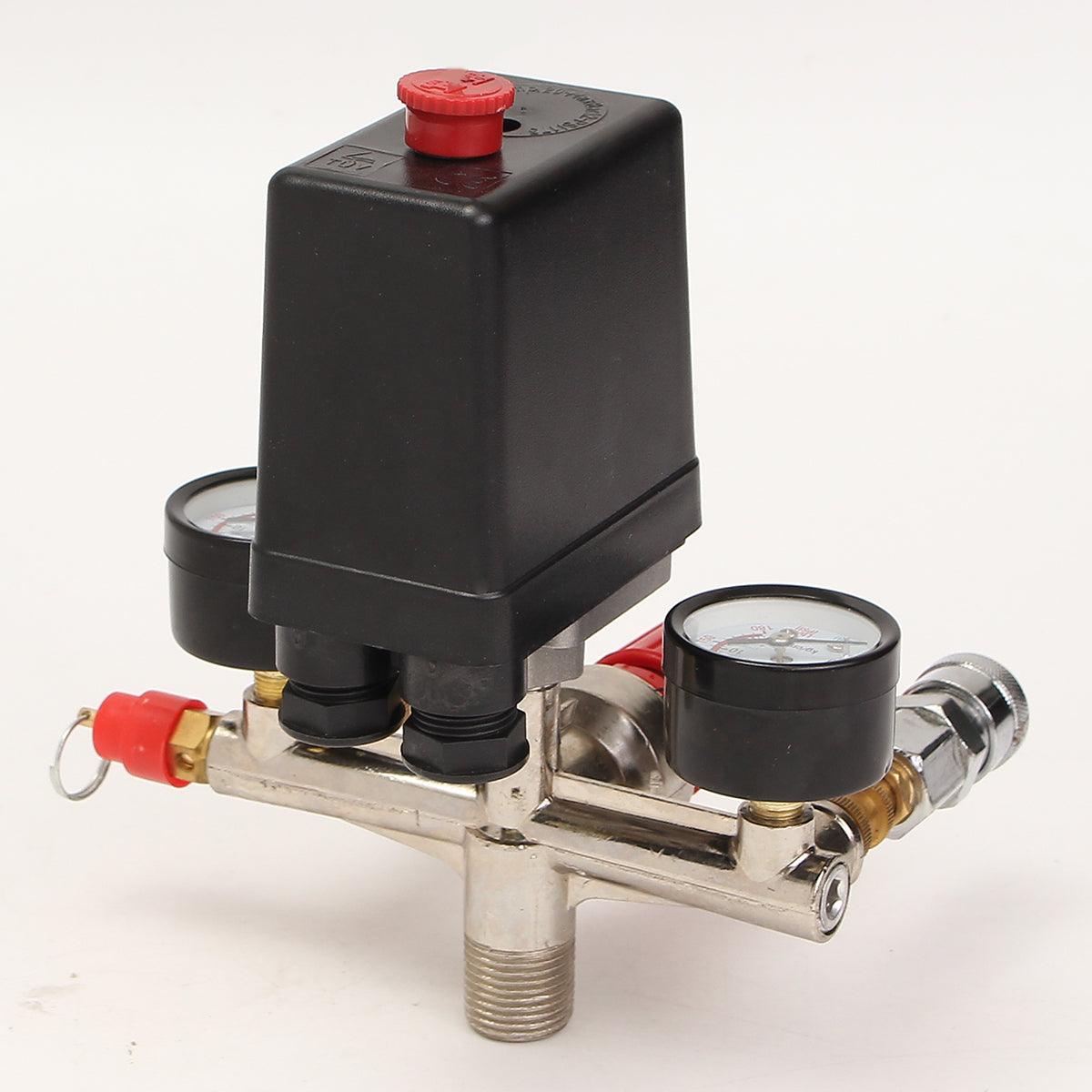 90-120 PSI Air Compressor Pressure Control Switch Valve Regulator w/ Double Gauges, Air Compressor Regulator