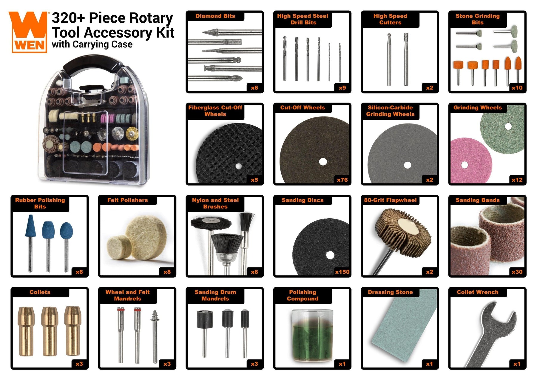 WEN 320-Piece Rotary Tool Accessory Kit with Carrying Case, 230321A