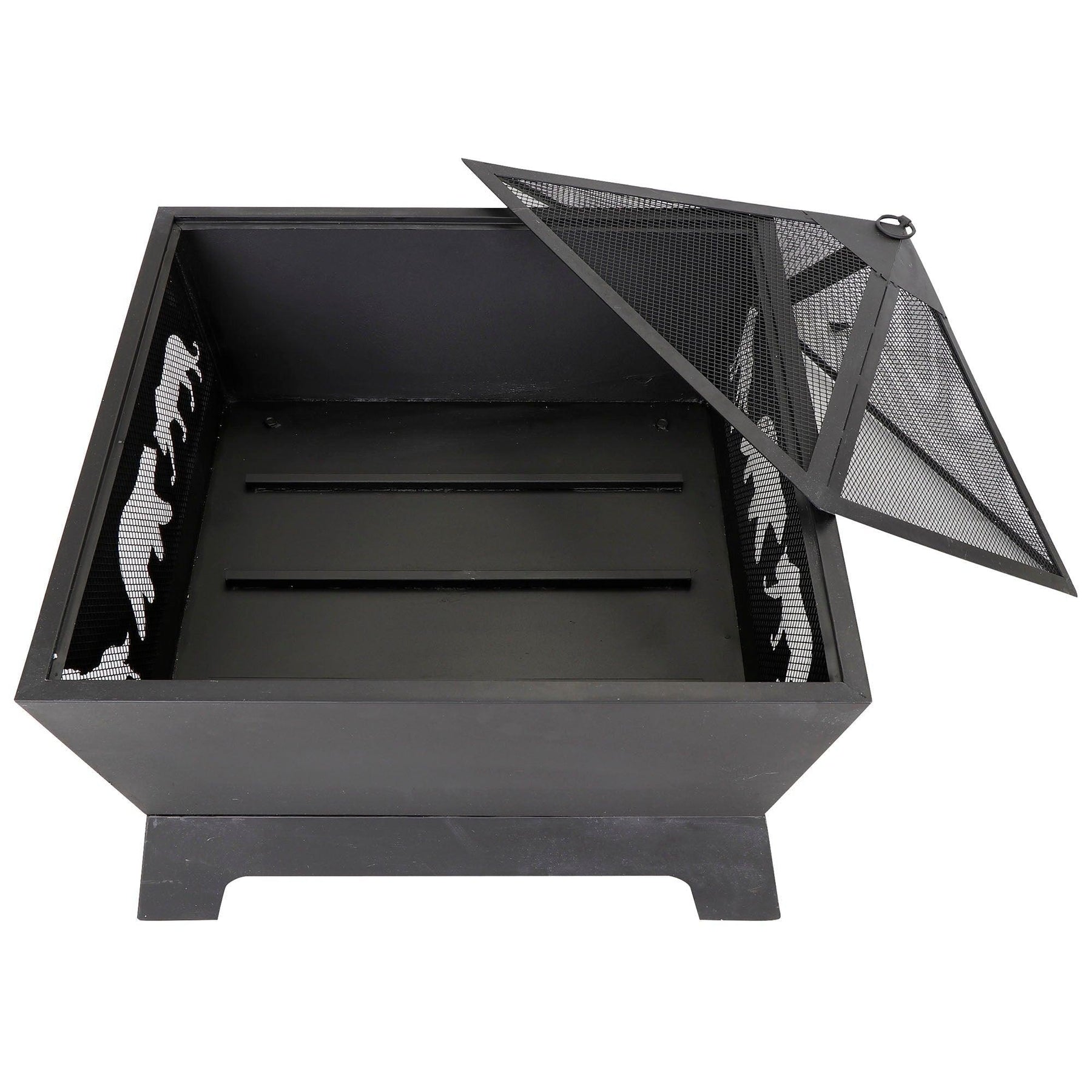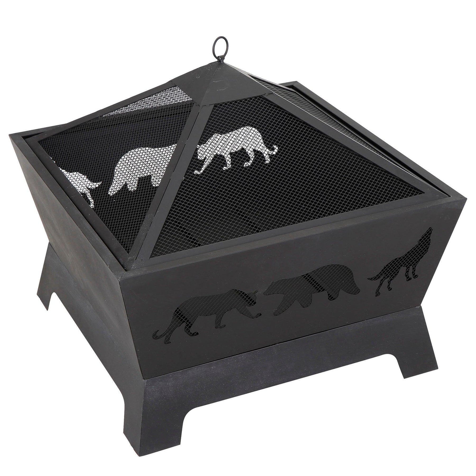 26" Metal Iron Pyramidal Guard Fire Pit - Antique Style Burner, Bonus Dacron Weather Cover and Poker