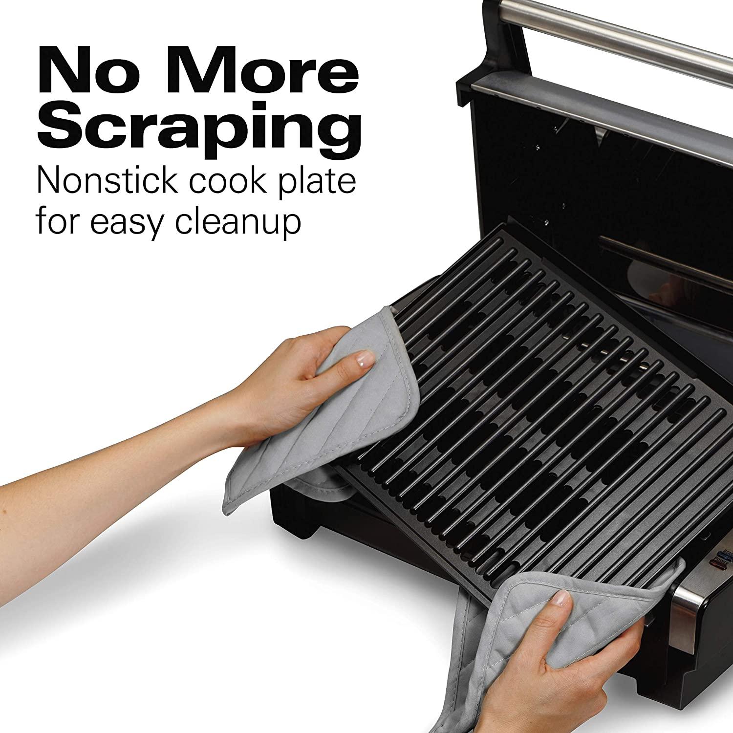Hamilton Beach Electric Indoor Searing Grill with Viewing Window and Removable Easy-to-Clean Nonstick Plate, 6-Serving, Extra-Large Drip Tray, Stainless Steel (25361)