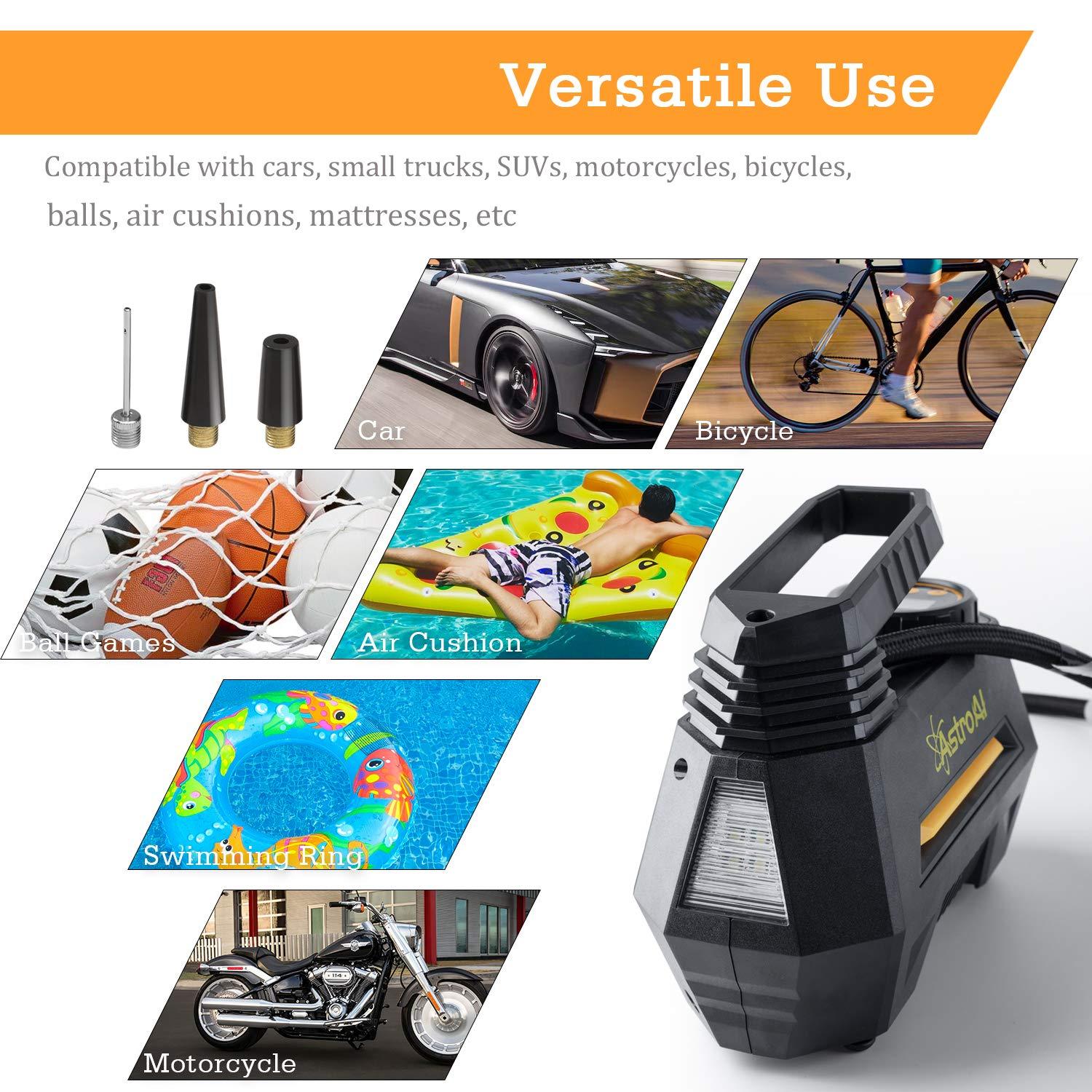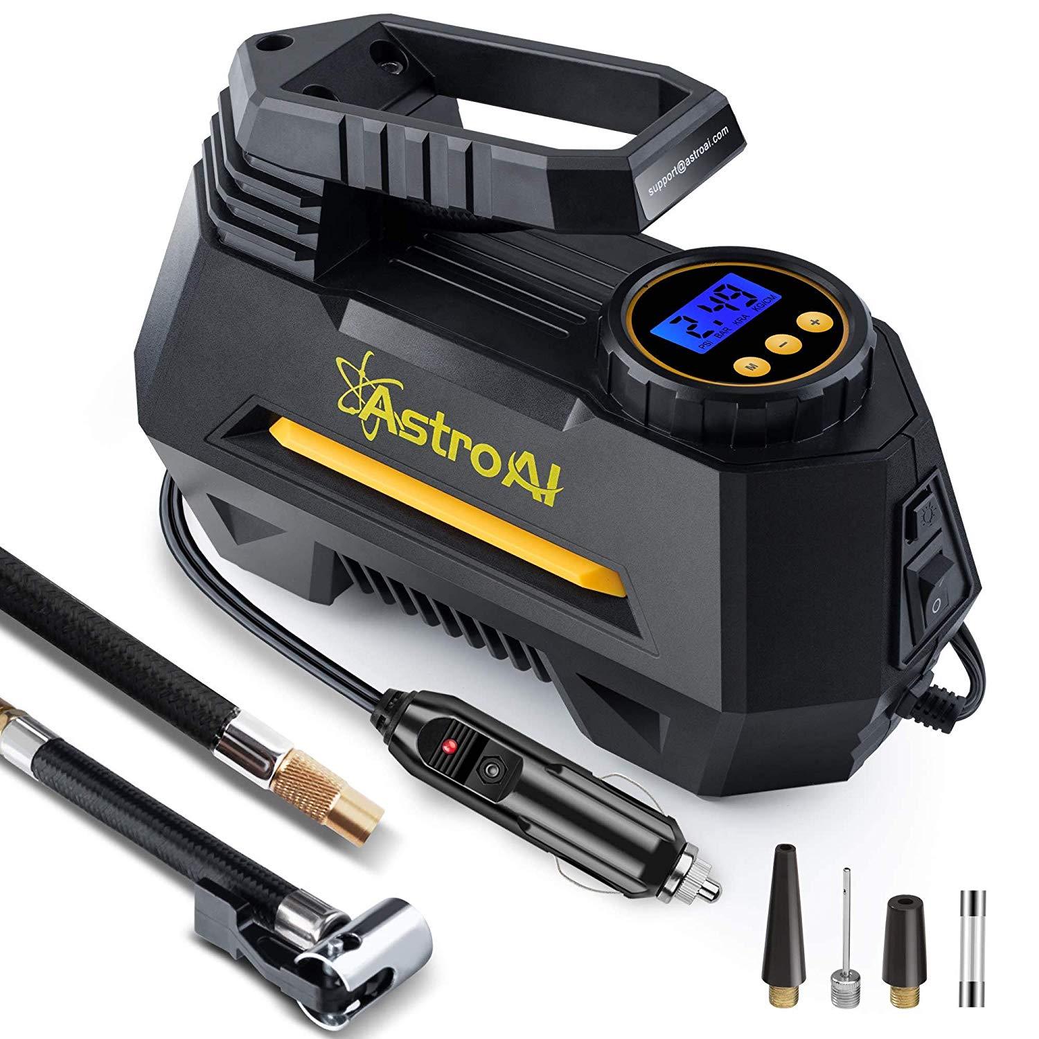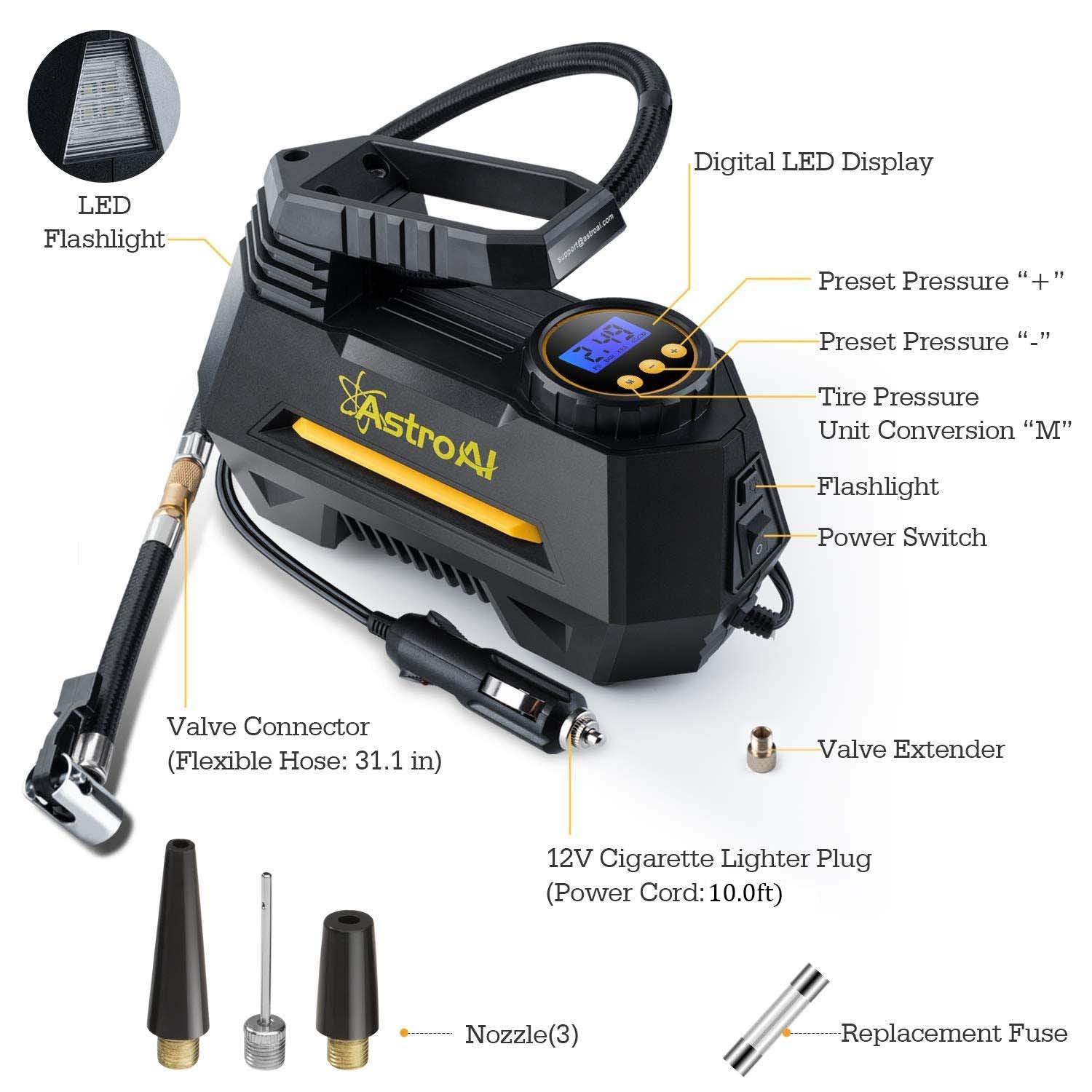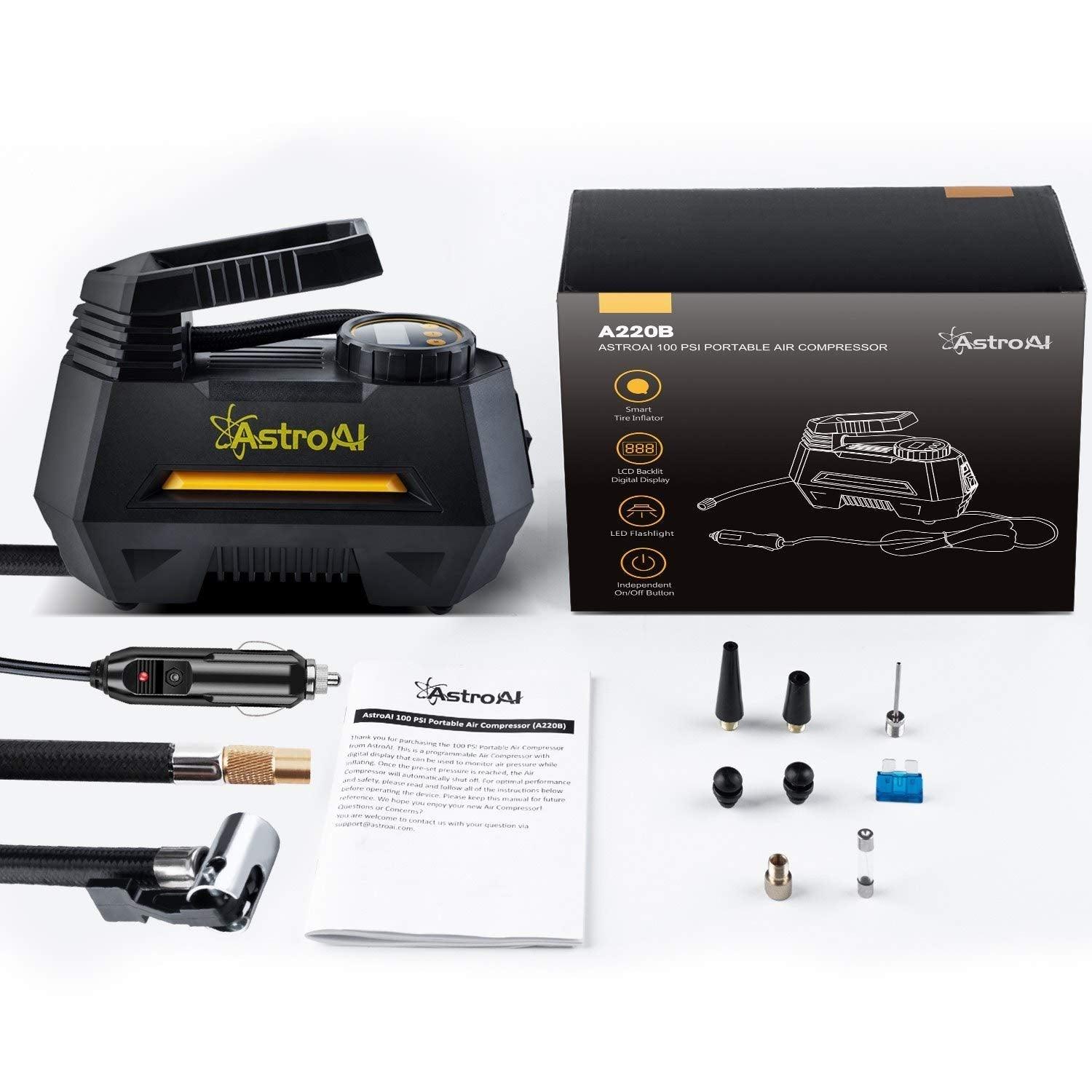 AstroAI Tire Inflator, Portable Air Compressor Pump 12V DC Electric Digital Gauge 100PSI with Larger Air Flow 35L/Min, LED Light, Extra Nozzle Adaptors, for Car, Bicycle, Ball - Black