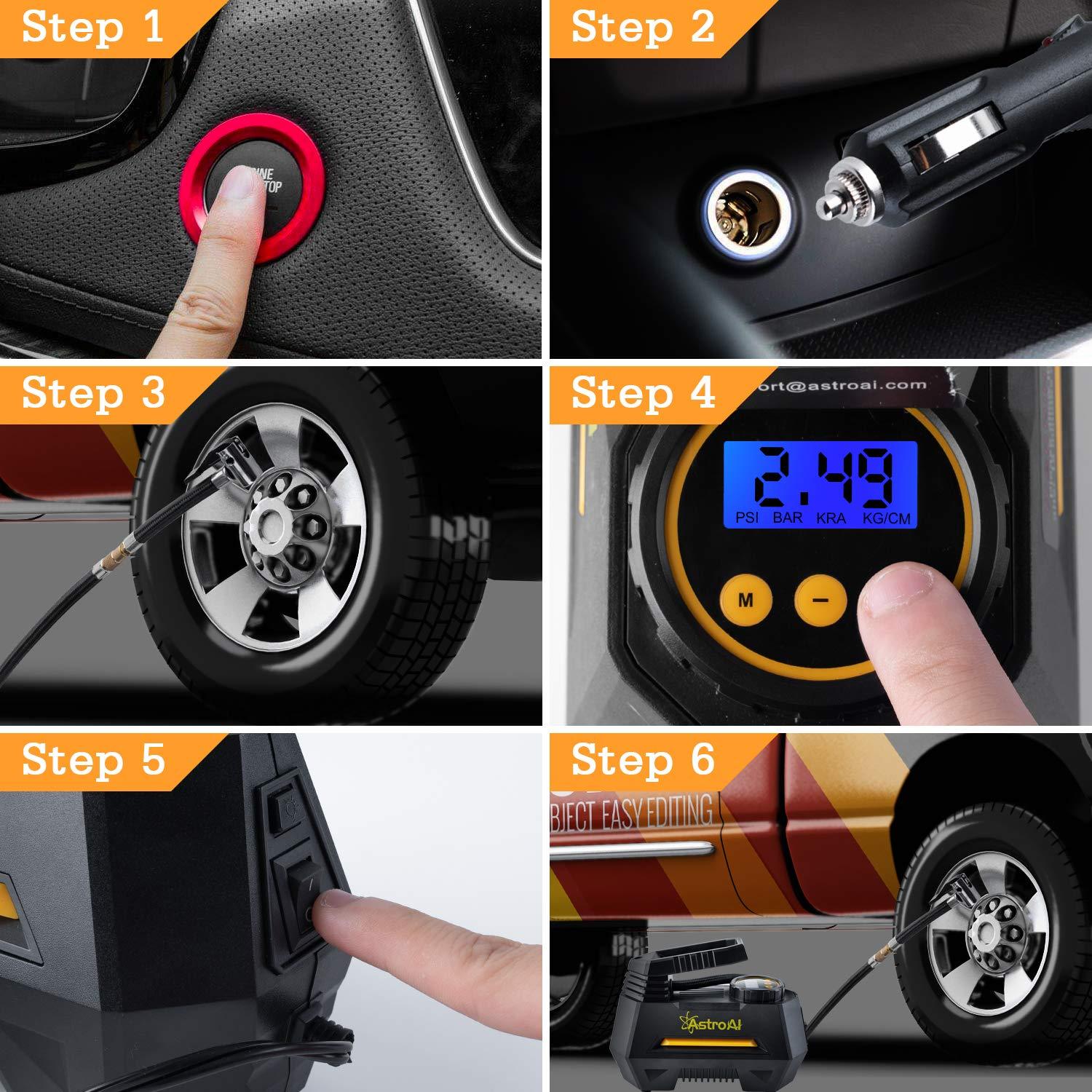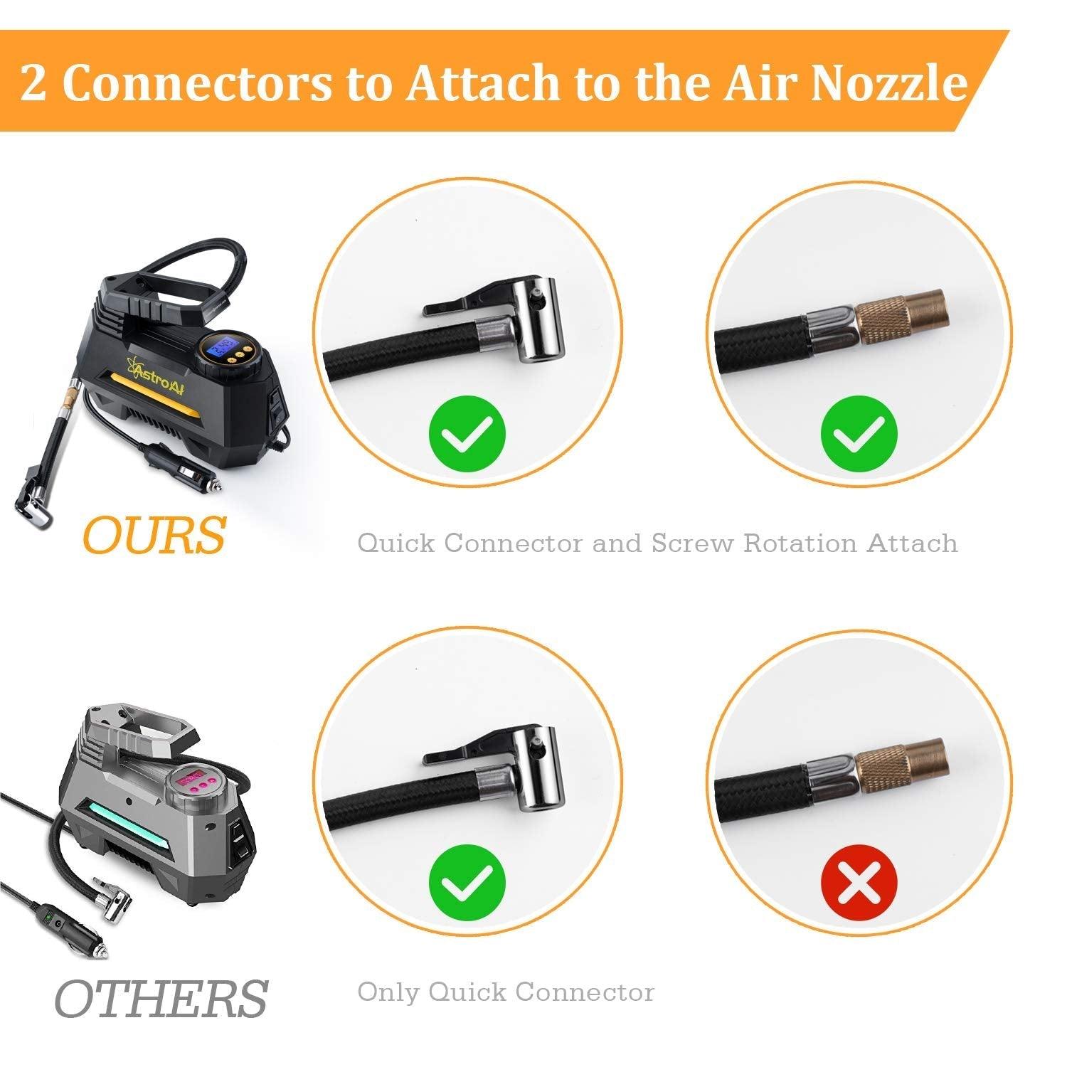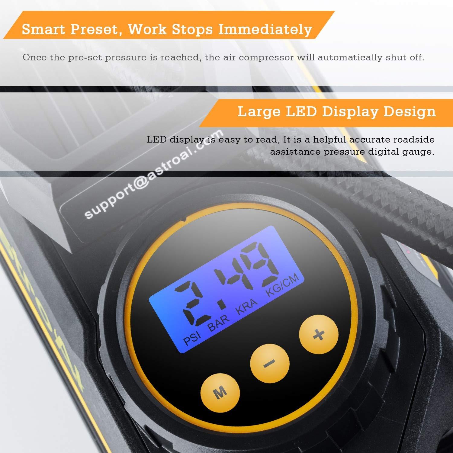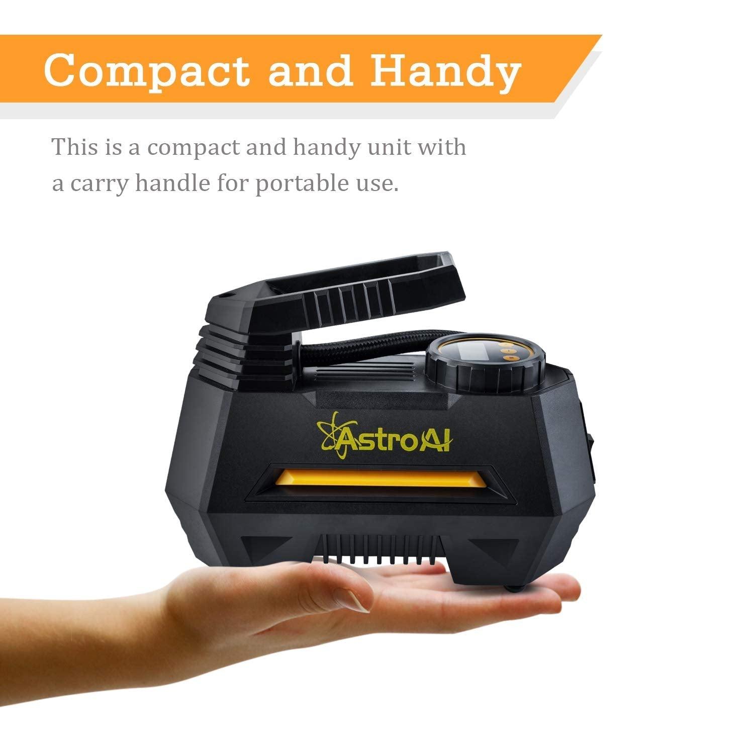 AstroAI Tire Inflator, Portable Air Compressor Pump 12V DC Electric Digital Gauge 100PSI with Larger Air Flow 35L/Min, LED Light, Extra Nozzle Adaptors, for Car, Bicycle, Ball - Black