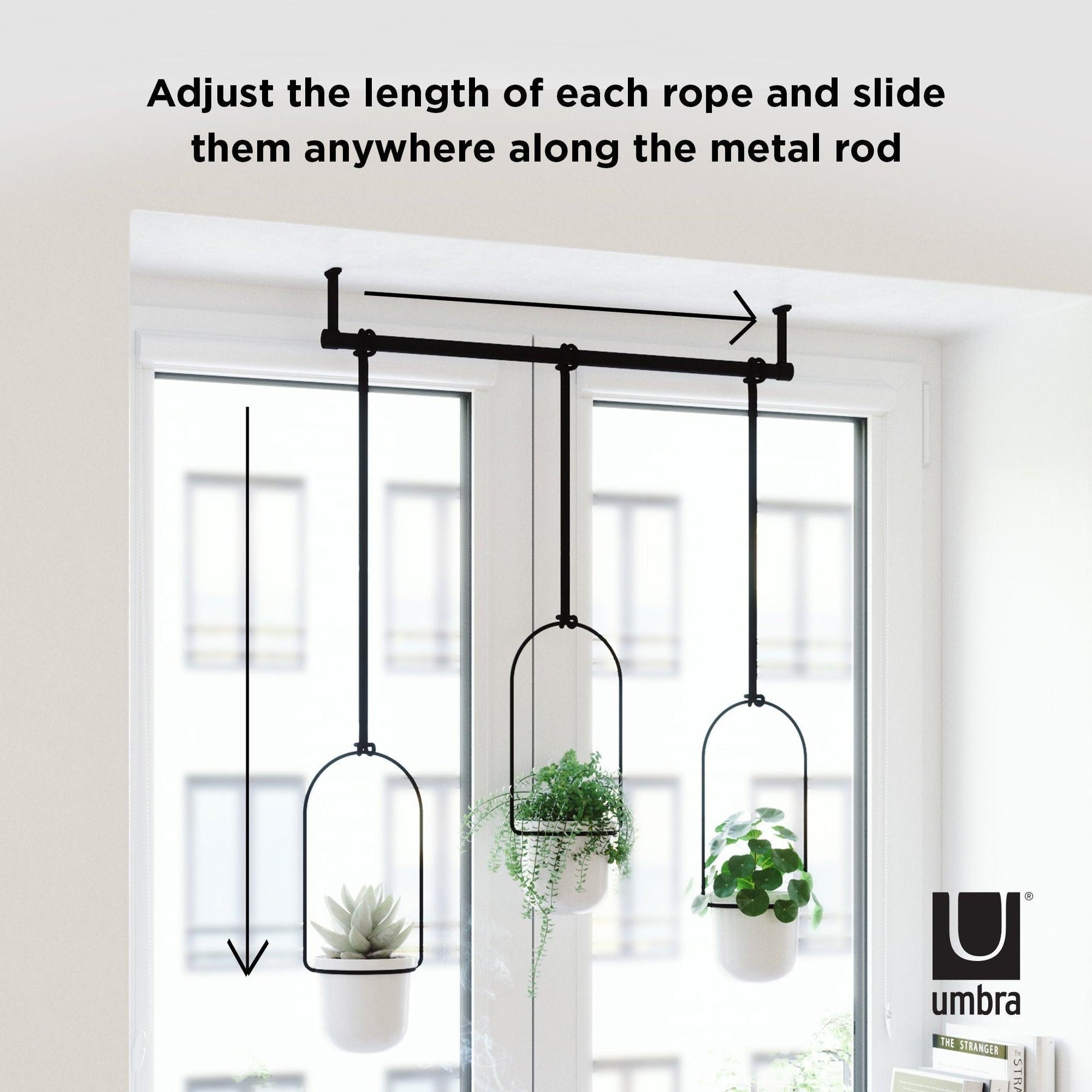 Umbra Triflora Adjustable Hanging Planters, White/Black
