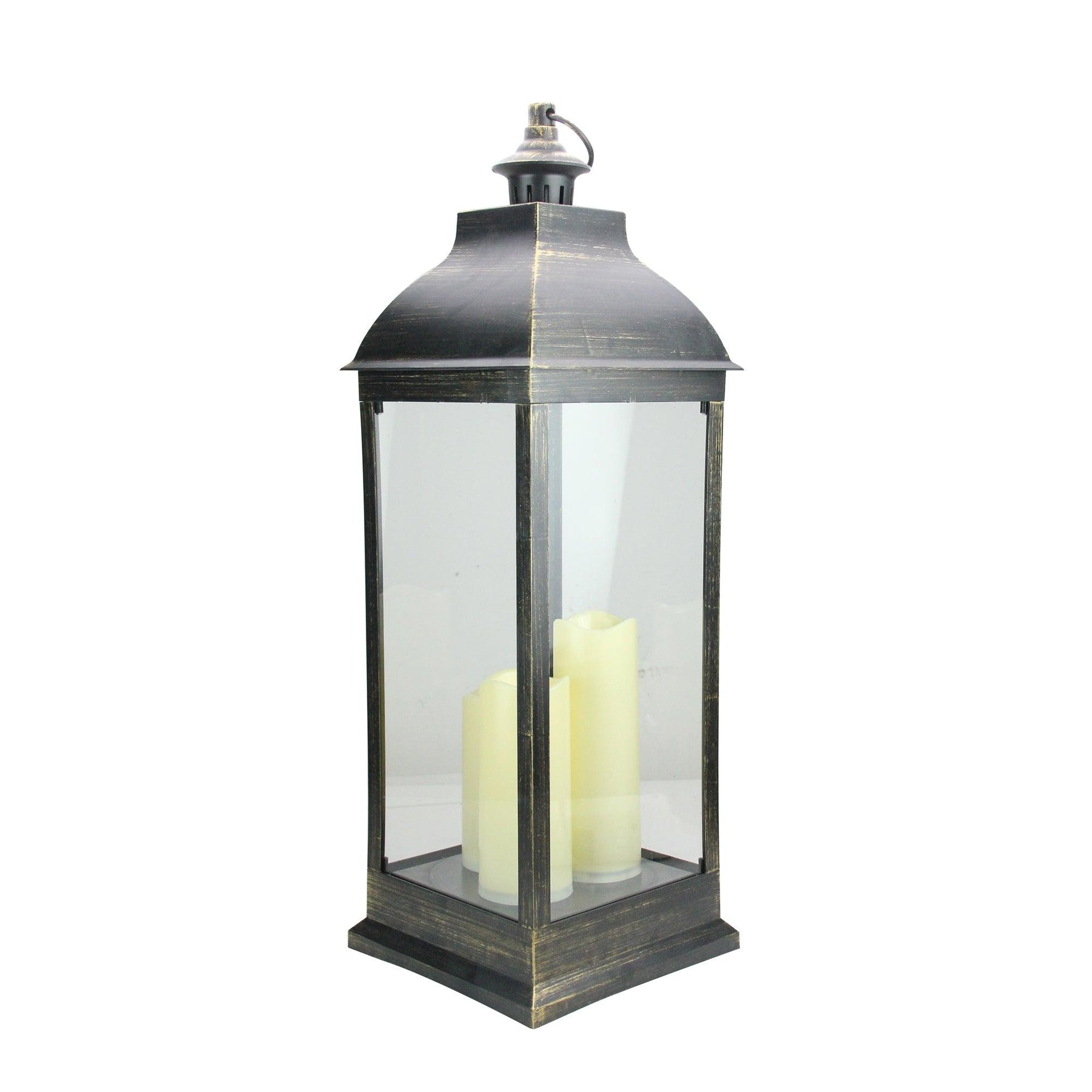 28" Large Black Brushed Gold Lantern With Flameless LED Candles