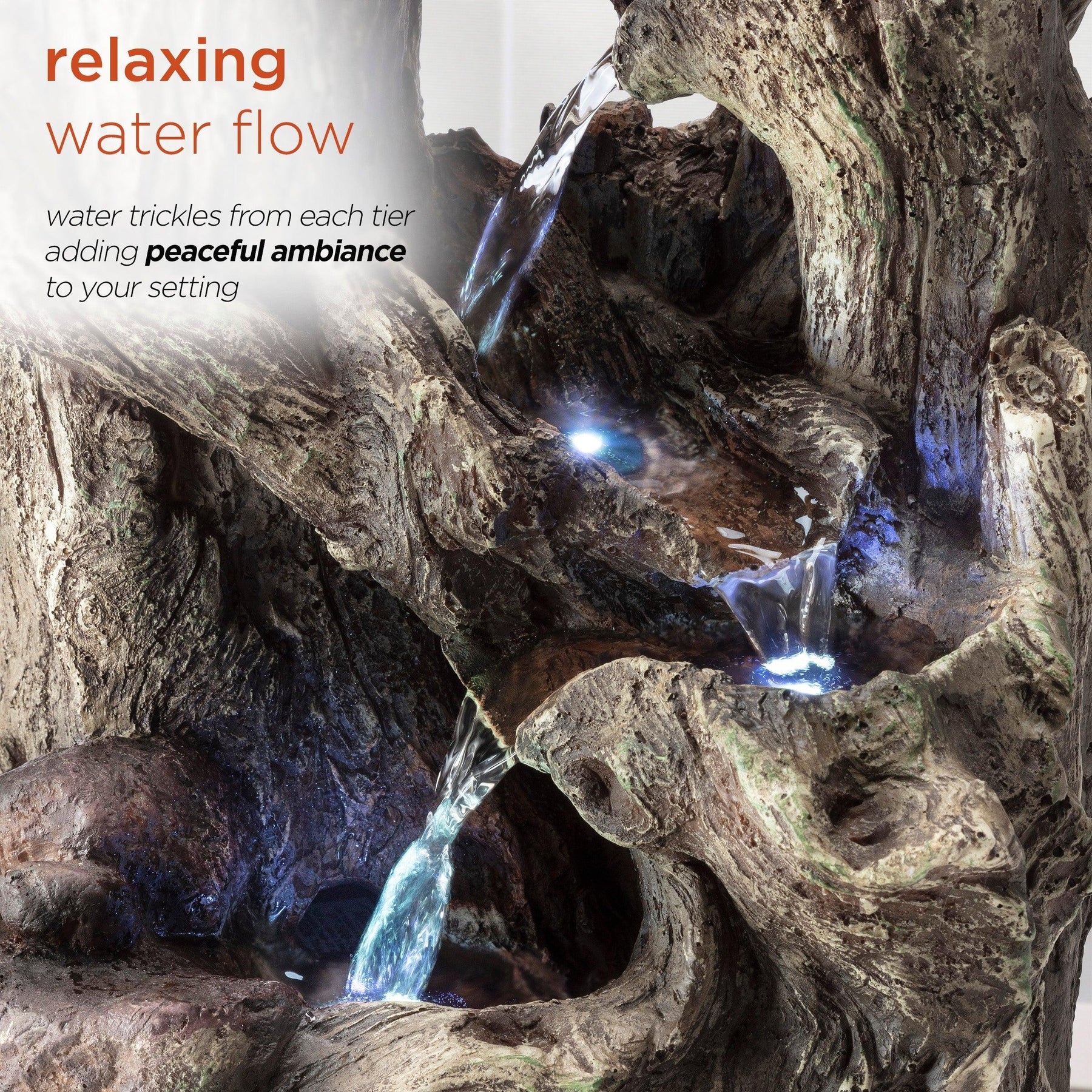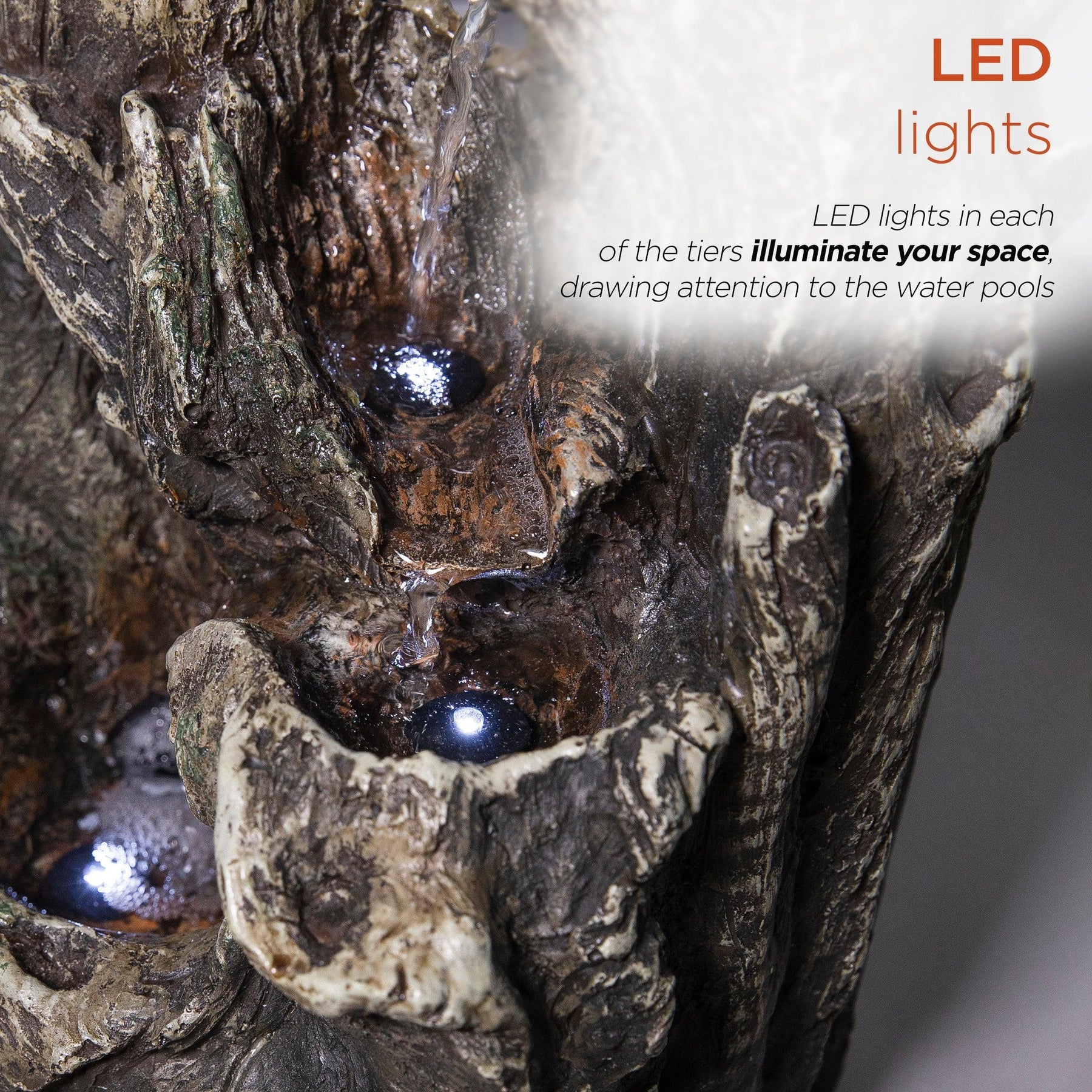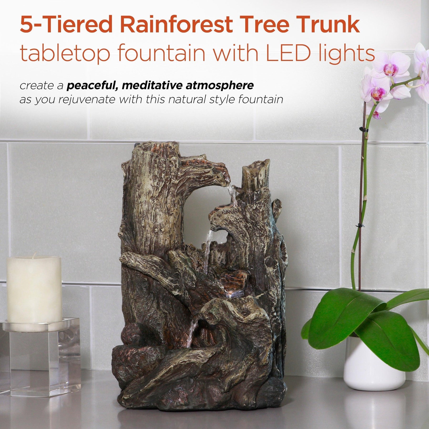 Alpine Corporation 5-Tier Rainforest Tree Trunk Water Fountain with LED Lights