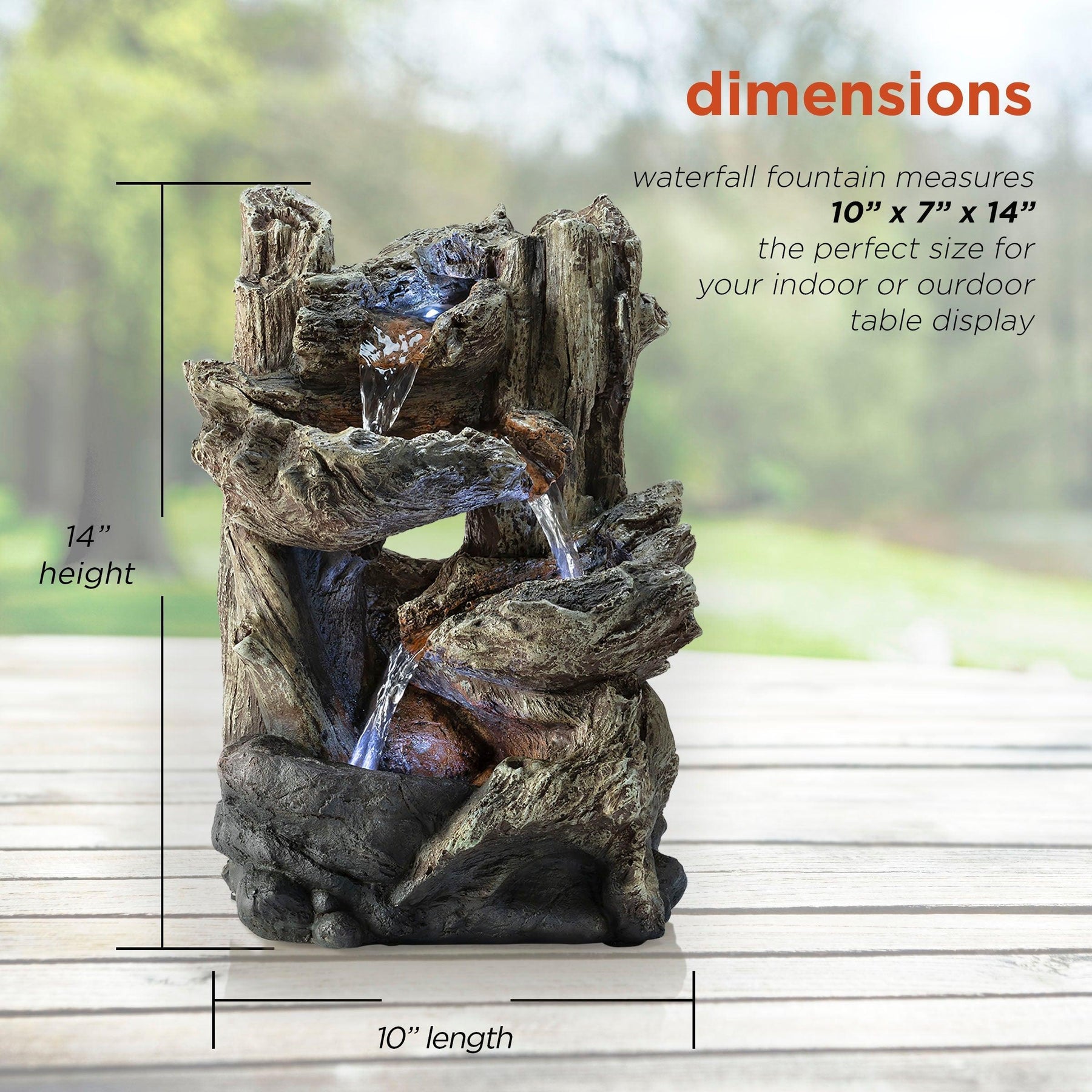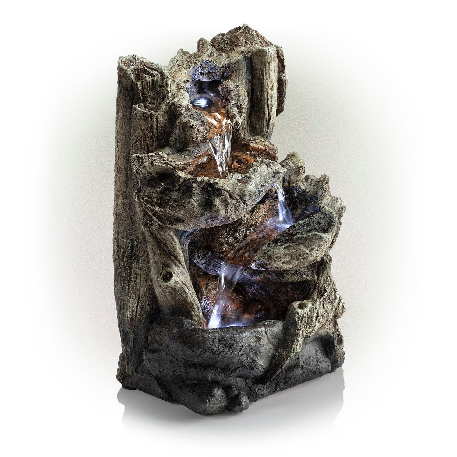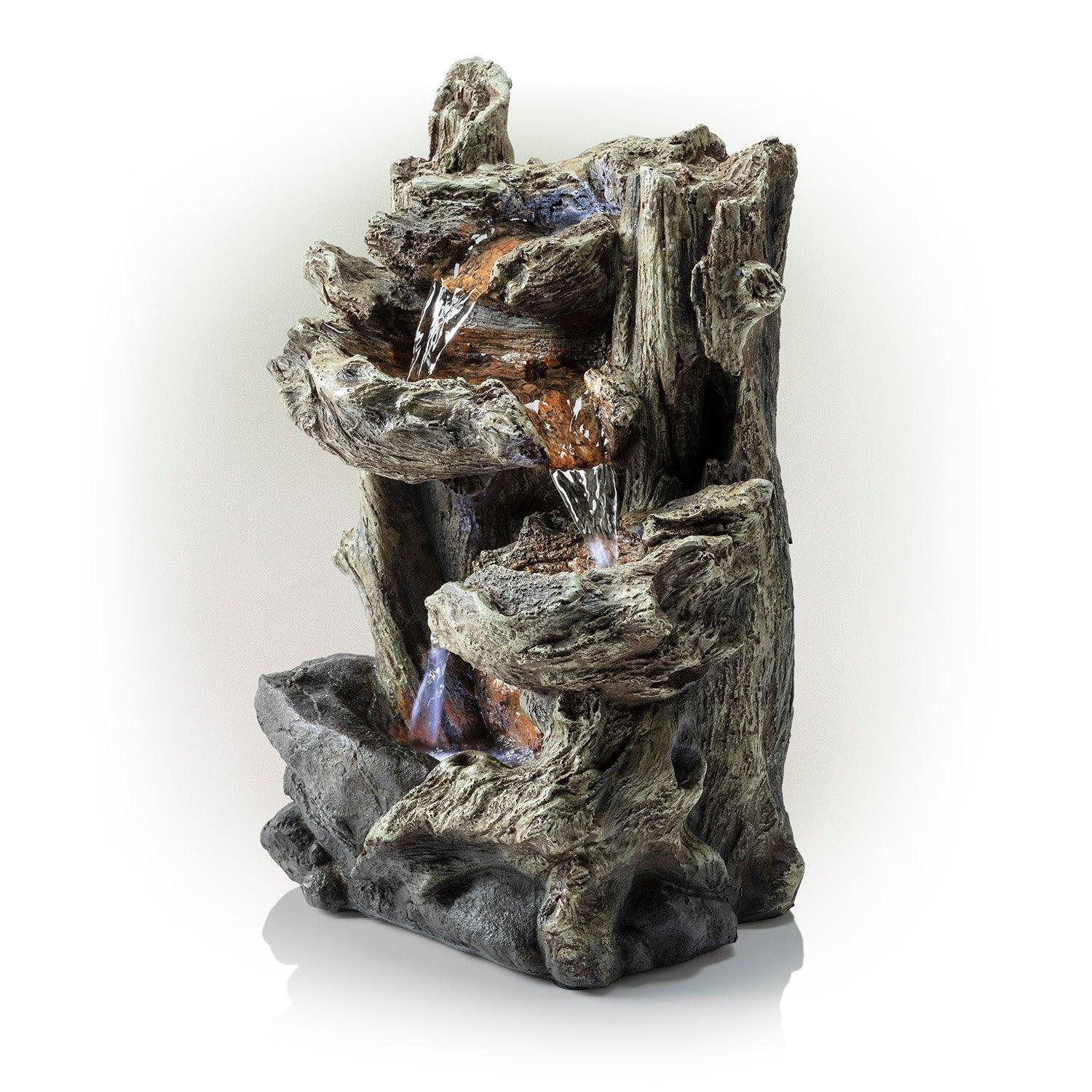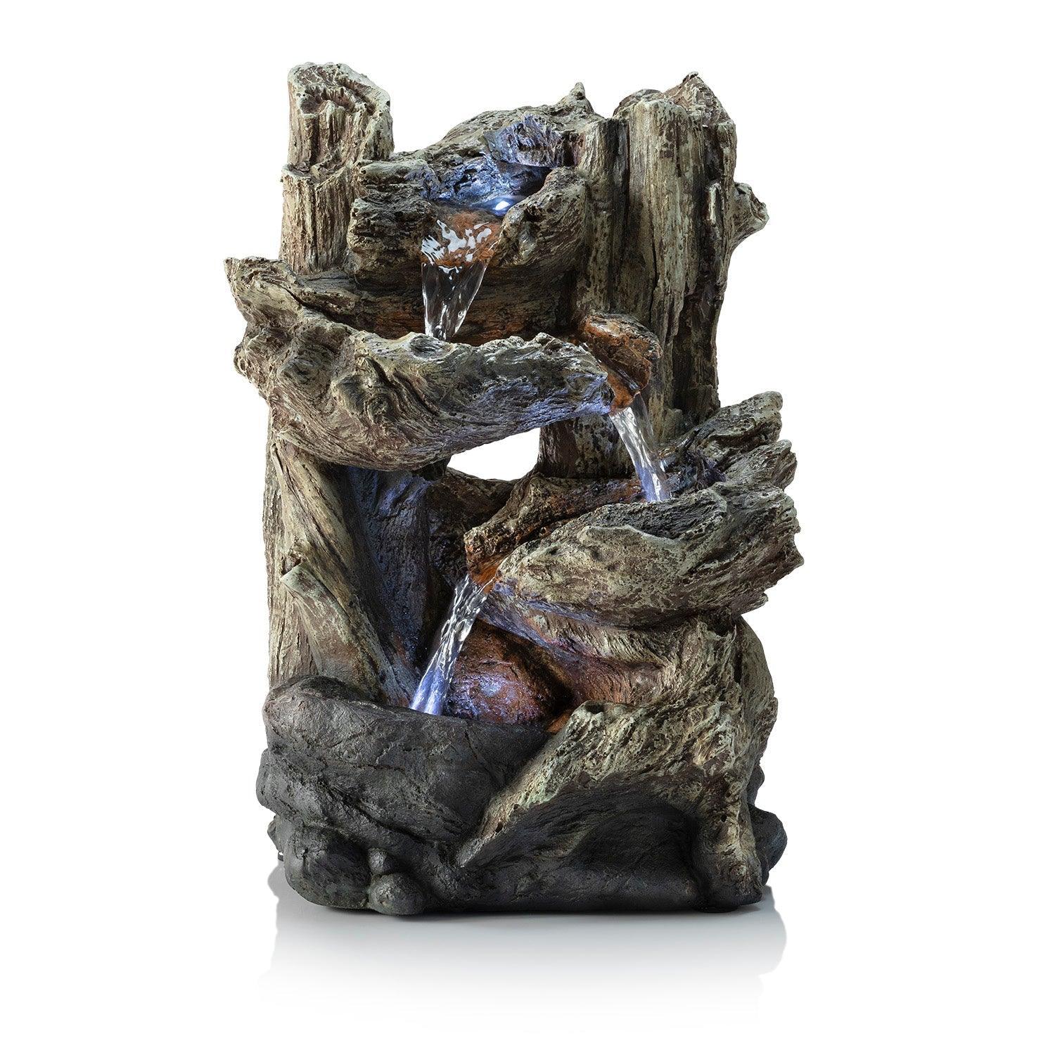 Alpine Corporation Tiered Log Tabletop Fountain with LED Lights