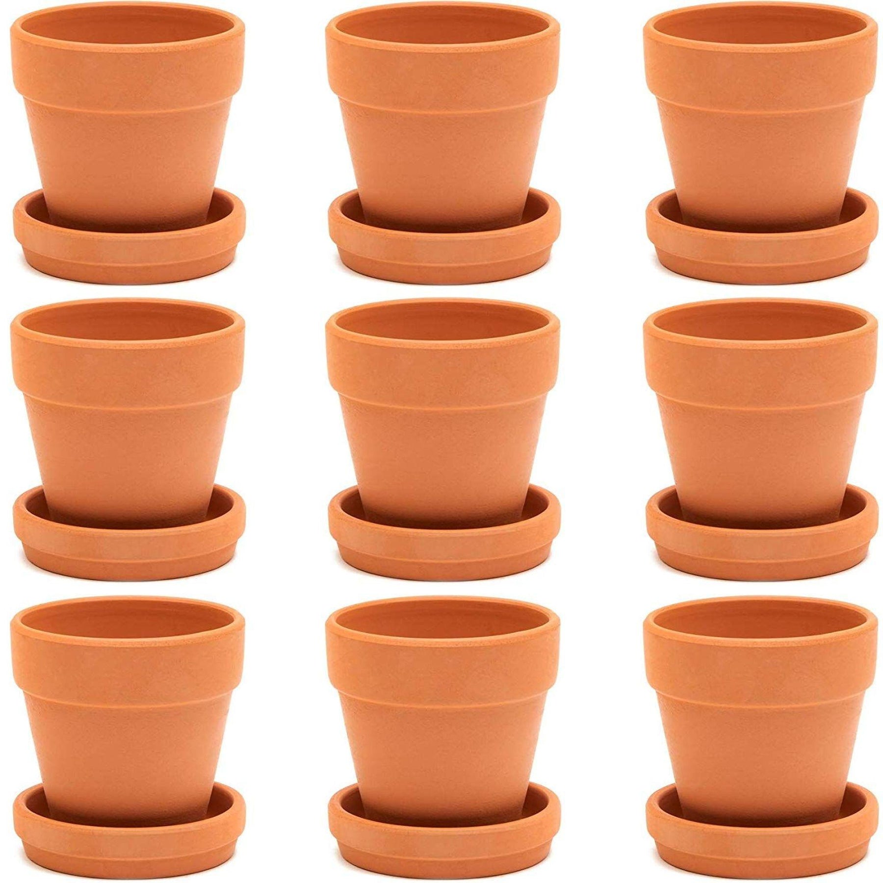 9 Packs 3" Terra Cotta Pots with Saucer, Mini Small Terracotta Flower Clay Pots Planters with Saucer Ceramic Pottery Nursery Indoor Outdoor Gardening for Cacti & Succulent Plants, Brown, 3 inches