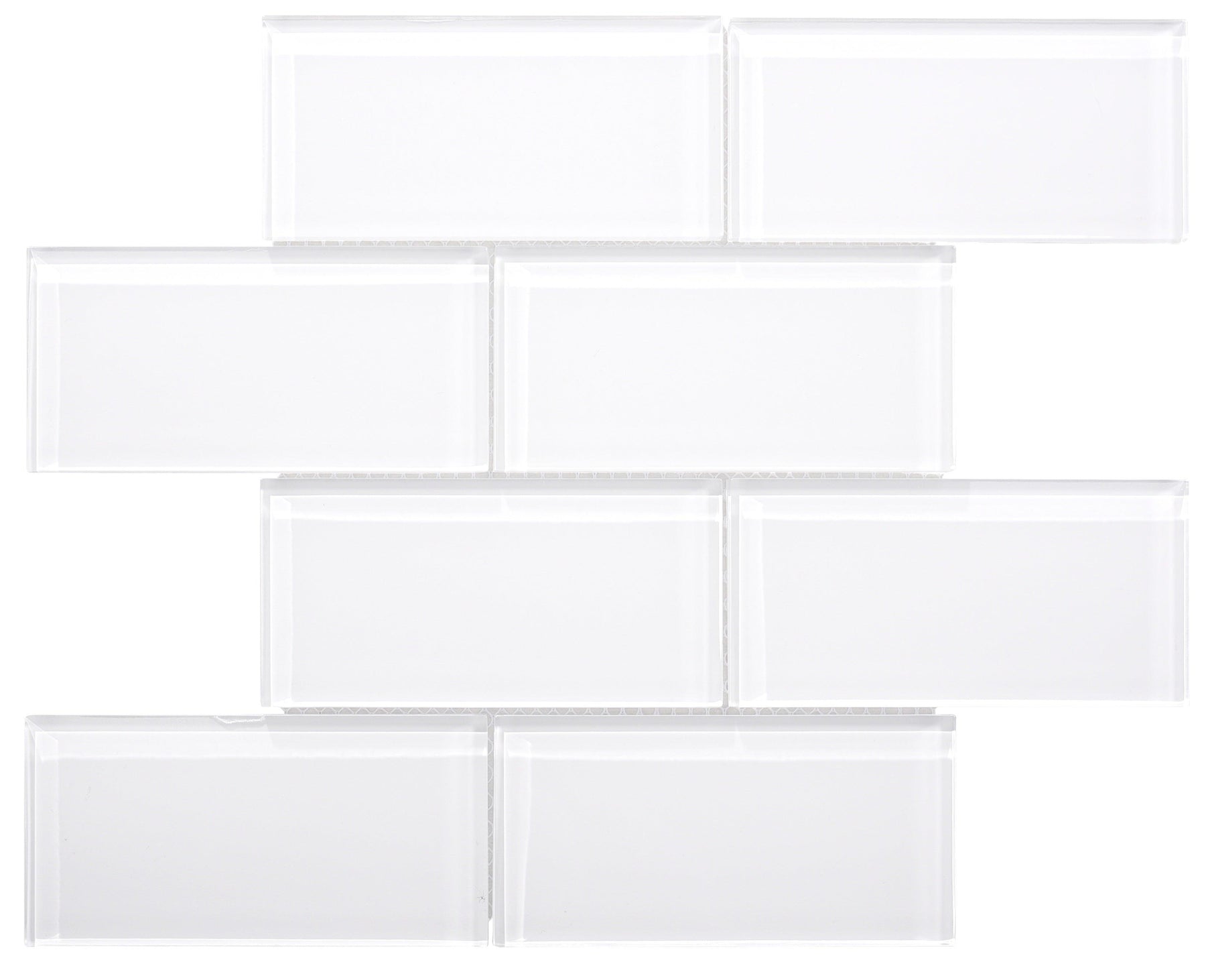 WS Tiles - Premium White 3 in. x 6 in. Glass Subway 12 in. x 12 in. Mesh-Backed Wall Tile (5 sq. ft. / Case)
