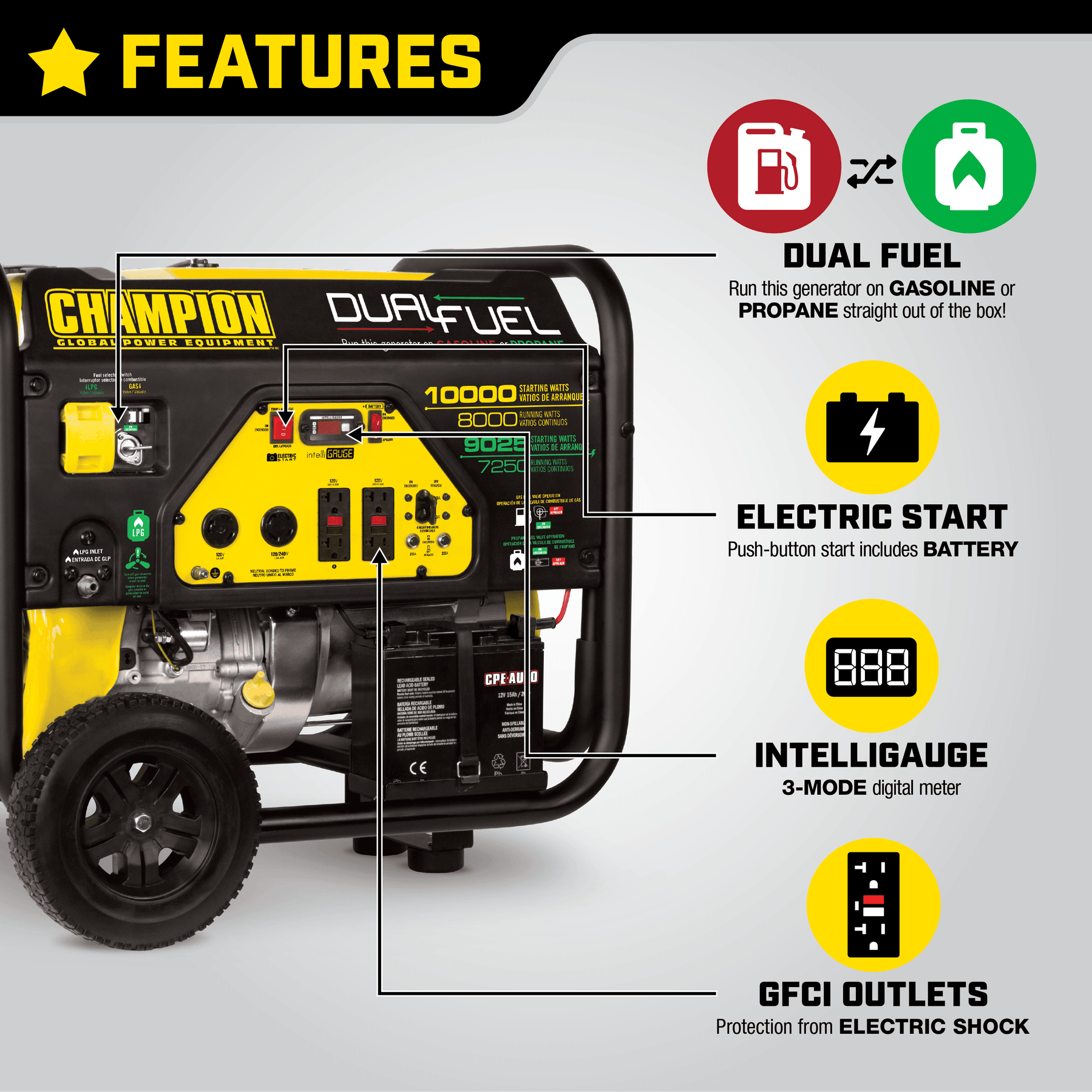 Champion Power Equipment 10,000/8,000-Watt Dual Fuel Portable Generator with Electric Start