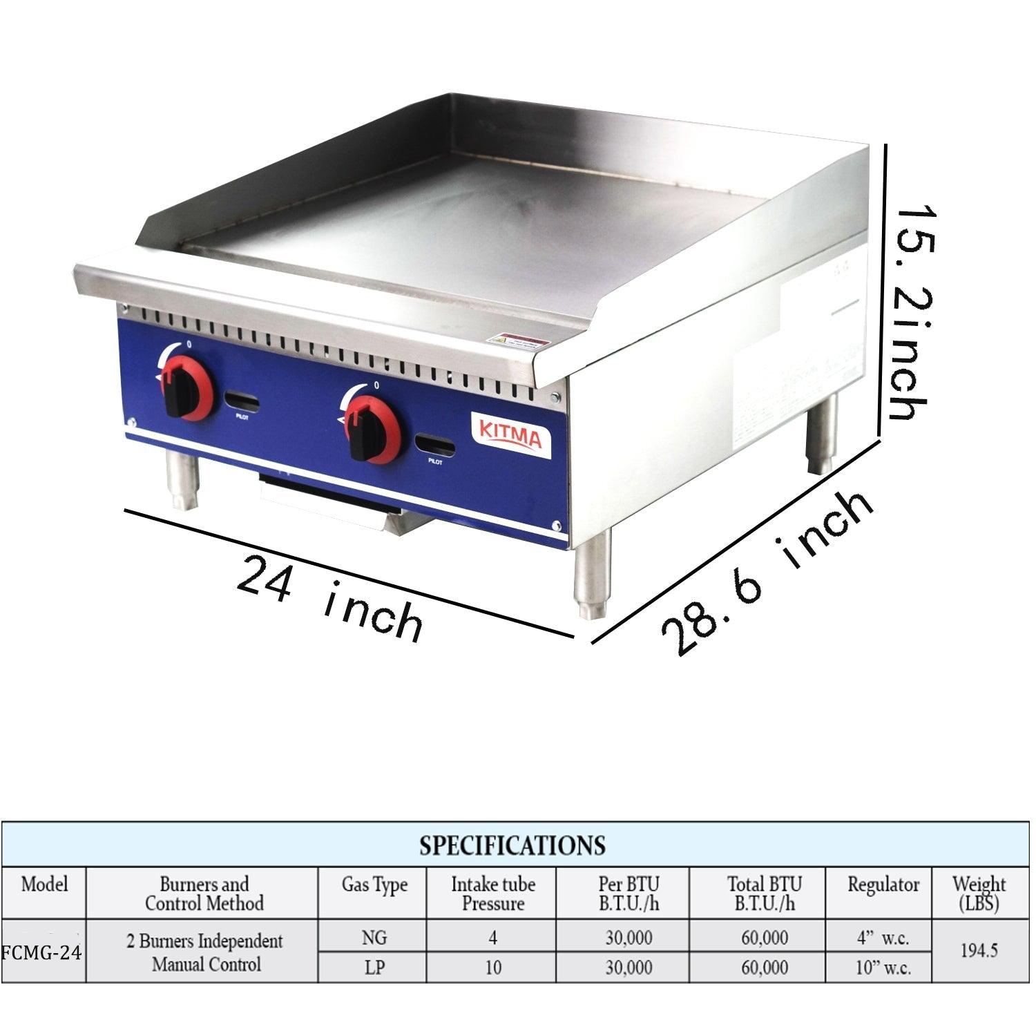 Commercial Countertop Manual Griddle, 24'' Heavy Duty Liquid Propane Flat Griddle, Top Griddle for Restaurant, 60,000 BTU