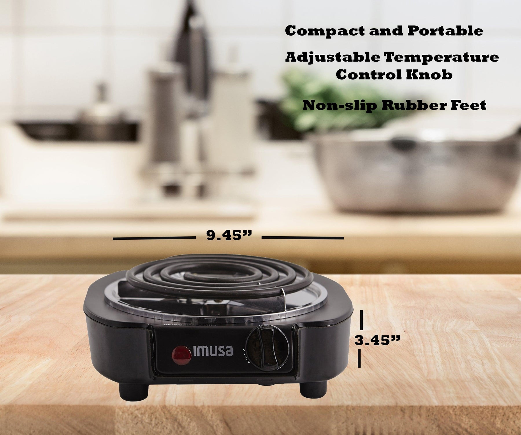 Imusa Electric Single Black Burner with Temperature Knob