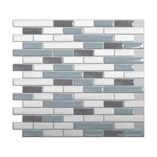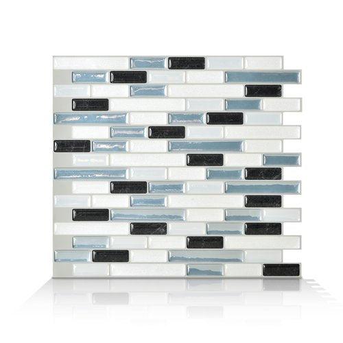 Smart Tiles Mosaik Muretto Brina 10.20'' x 9.10'' Peel & Stick Wall Tile in Charcoal. White & Stone Blue