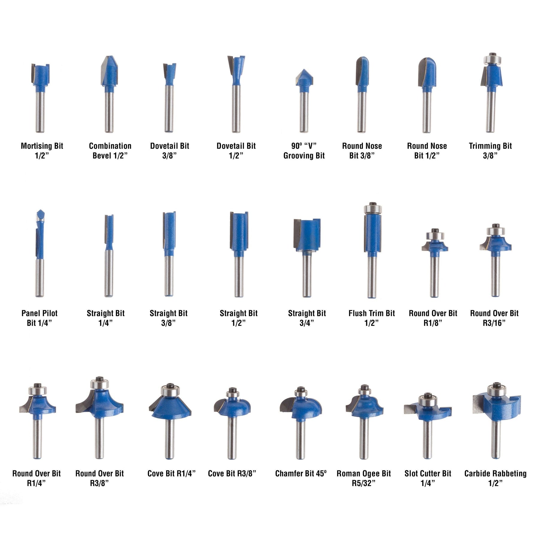 Router Bit Set, 24 Piece Kit With Shank And Wood Storage Case By Stalwart