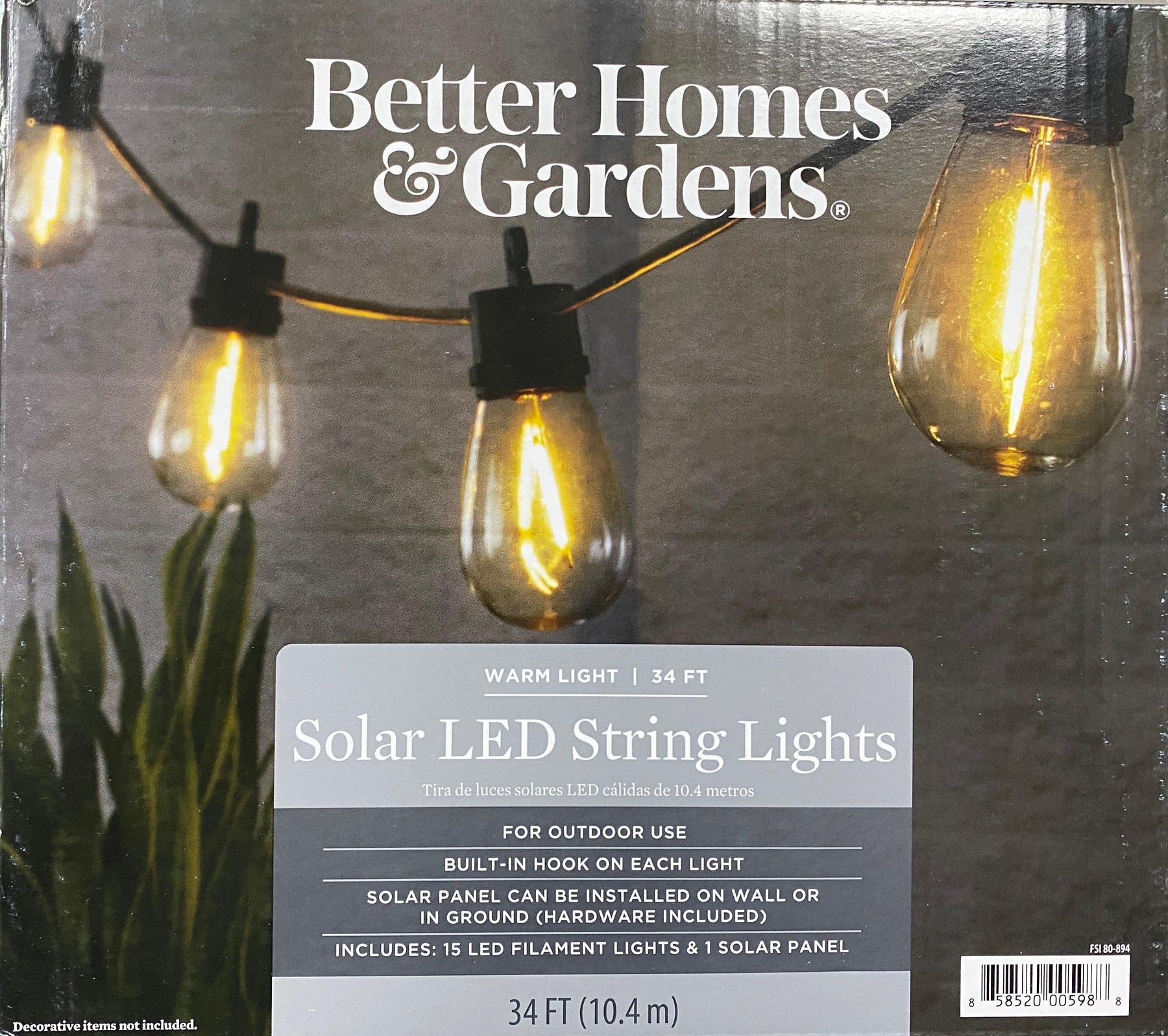 Better Home & Garden Solar String Lights for Decks, Patios, Backyards