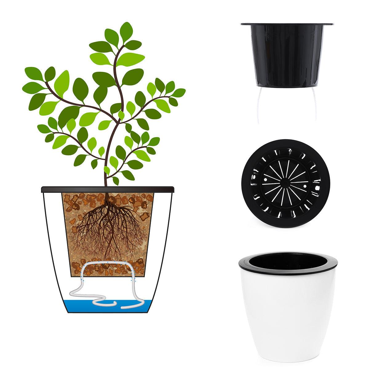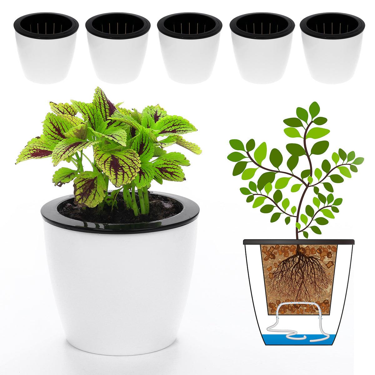 6 Pack 6.7" Self Watering Planter Wicking Pots for Indoor Golden Devil's Ivy, African Violet, Ocean Spider Plant, Orchid, White Color