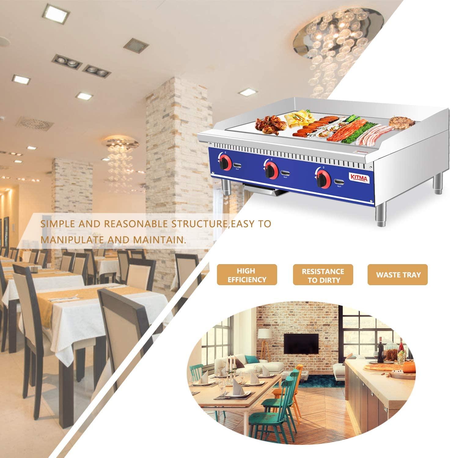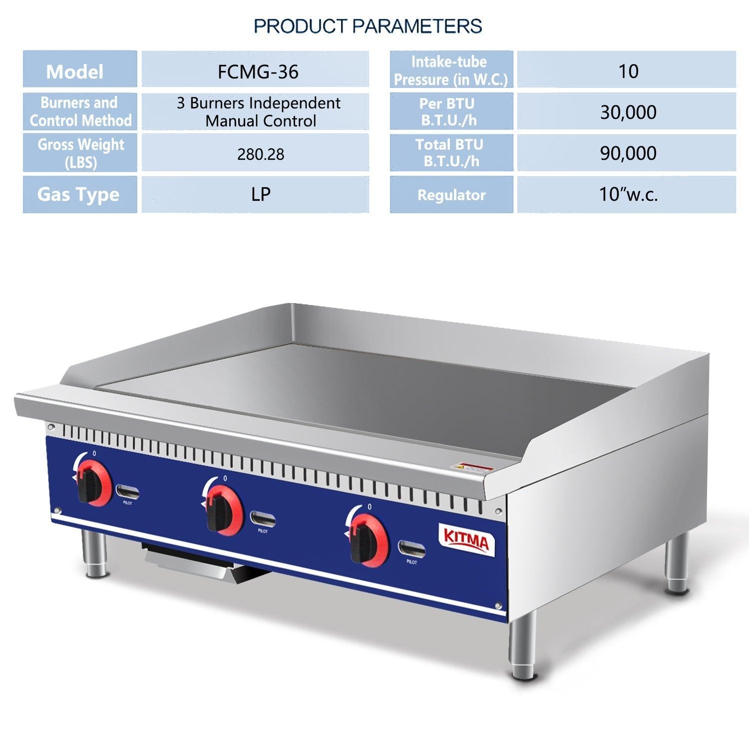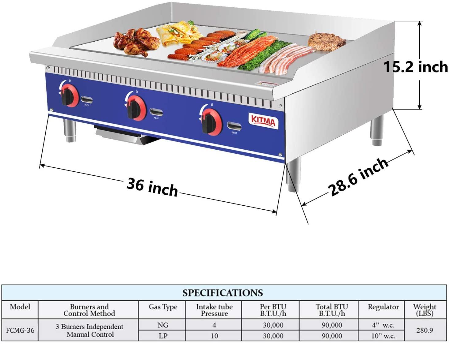 Commercial Countertop Manual Griddle, 36'' Heavy Duty Liquid Propane Flat Griddle, Top Griddle for Restaurant, 90,000 BTU