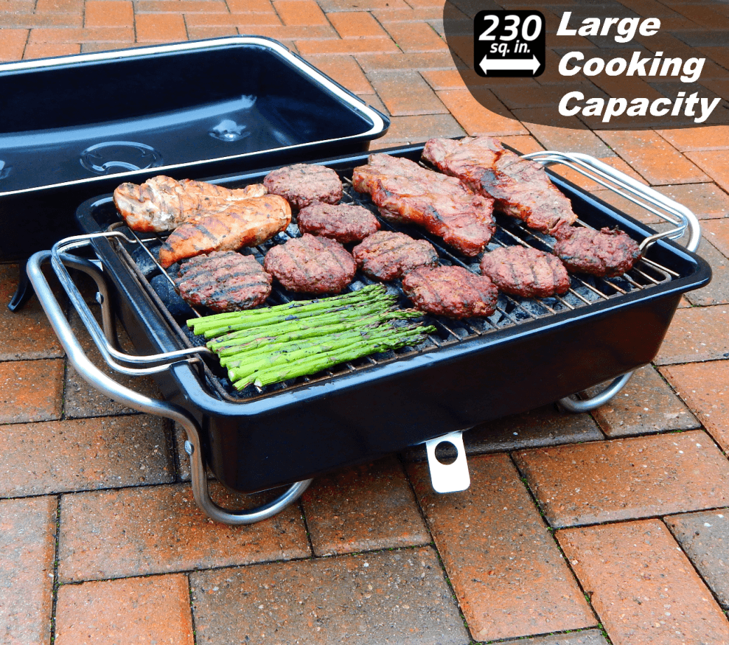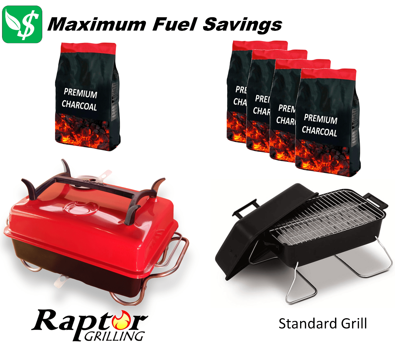 Raptor Grilling - Optimized Portable Charcoal Grill Smoker - Barbecue for Camping, Tailgating & Travel – Go Anywhere With This Tabletop Outdoor BBQ Cooker and Char-Grill, Broil, Smoke or Hibachi-BLACK