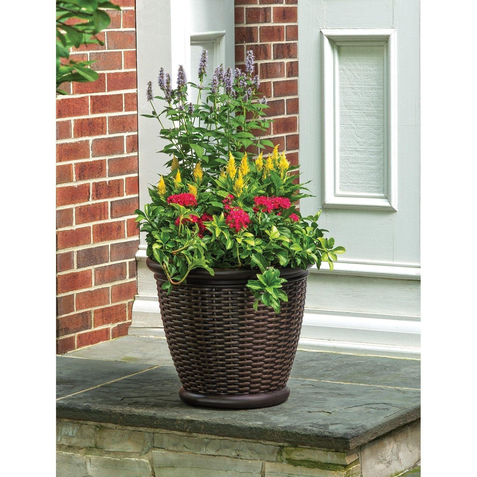 Better Homes & Gardens 18 in. Faux Wicker Resin Planter Pot, Java Brown