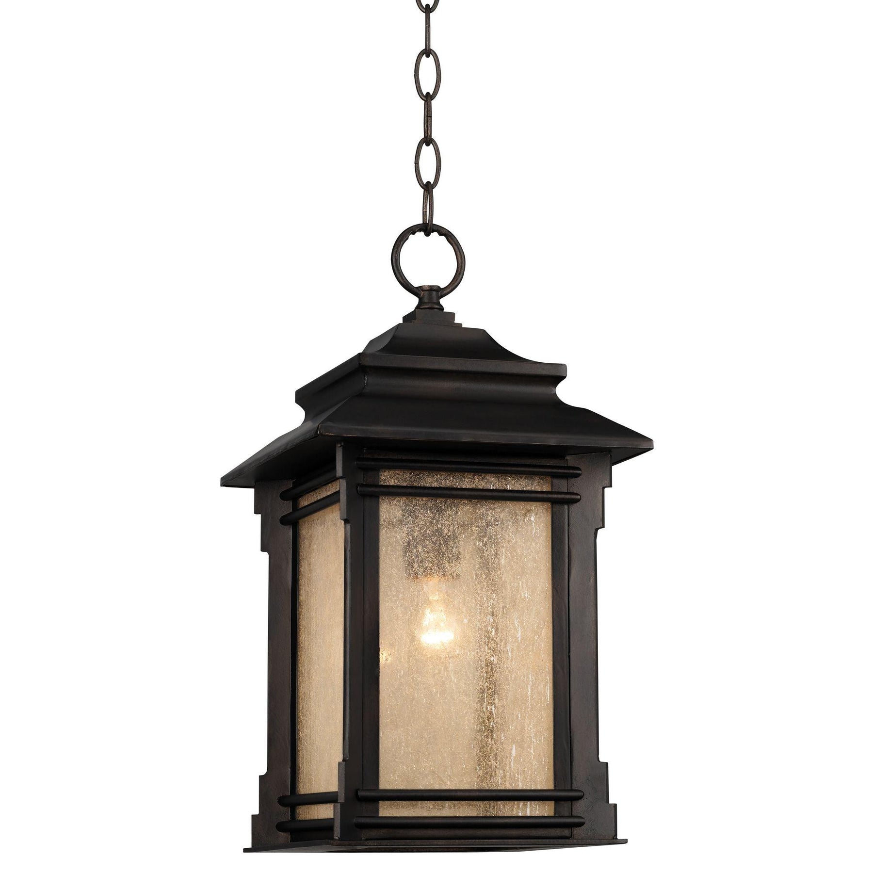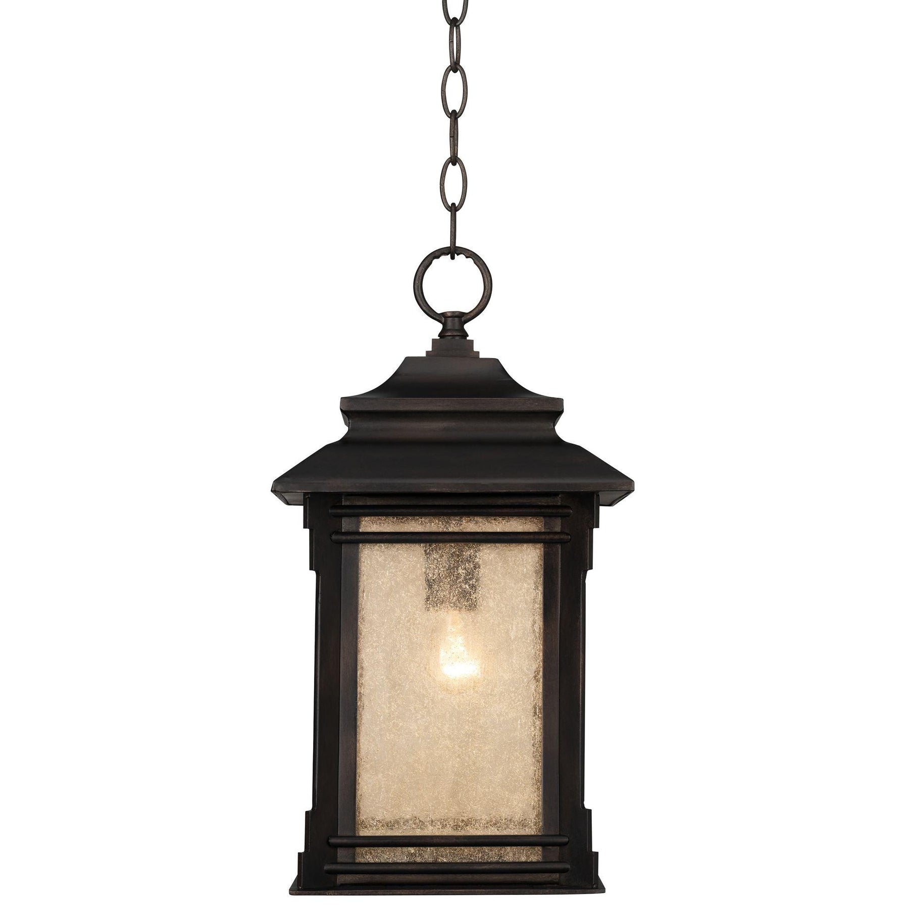 Franklin Iron Works Rustic Outdoor Ceiling Light Hanging Lantern Walnut Bronze 19 1/4" Frosted Glass Damp Rated for Porch Patio