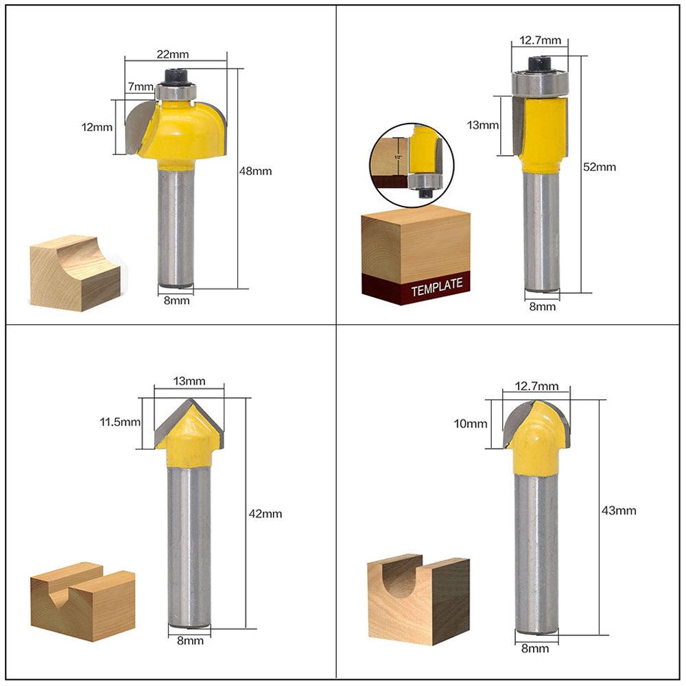12pcs Milling Cutter Router Bit Set 8mm Shank Mill Woodworking Wood Cutters Tool for Floor Handmade Engraving Cutting