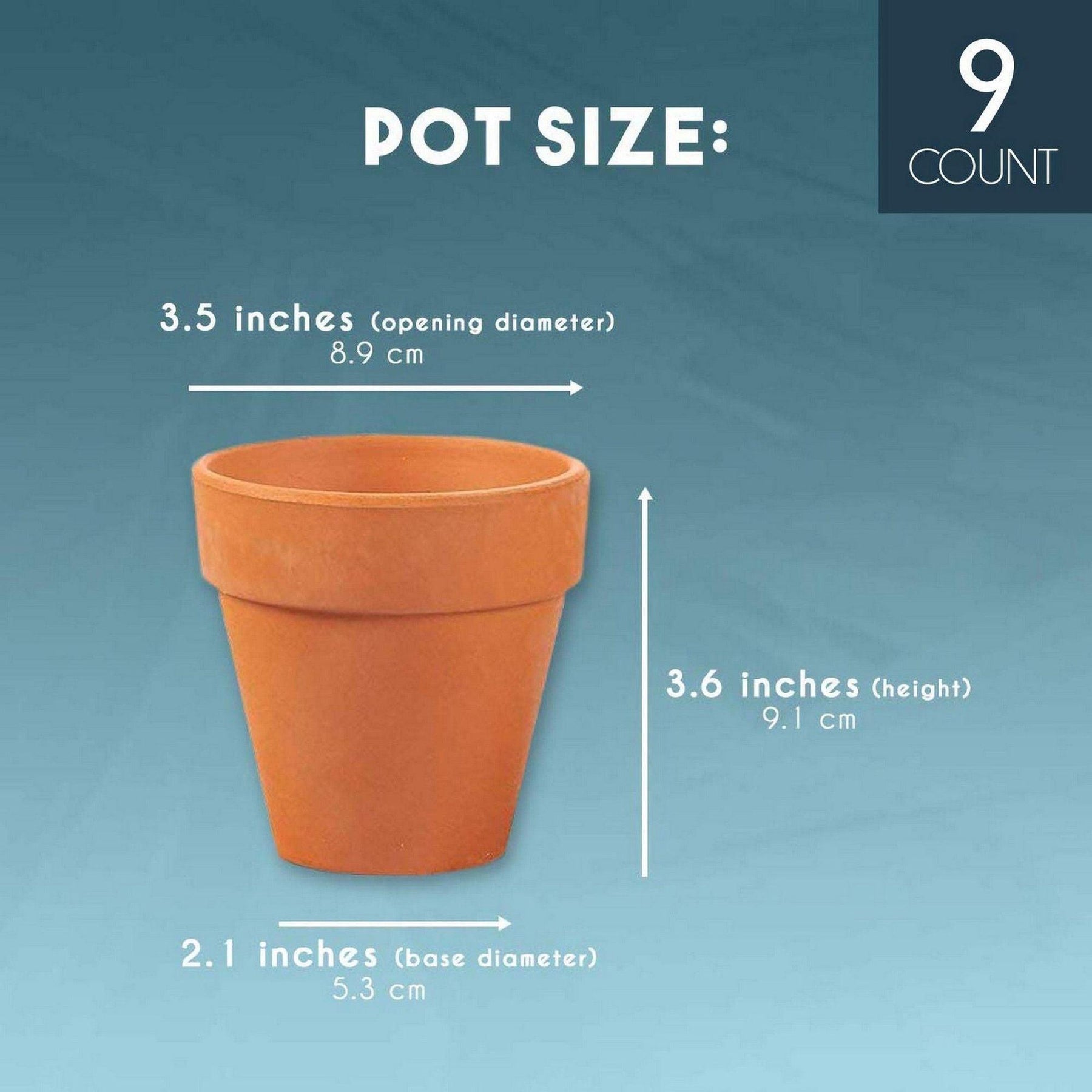 9-Pack 3.5" Terra Cotta Pots, Mini Small Terracotta Flower Clay Pots Planters for Plants with Drainage Holes, Ceramic Pottery Nursery Indoor Outdoor Garden Gardening for Cacti and Succulent 3.5 inches