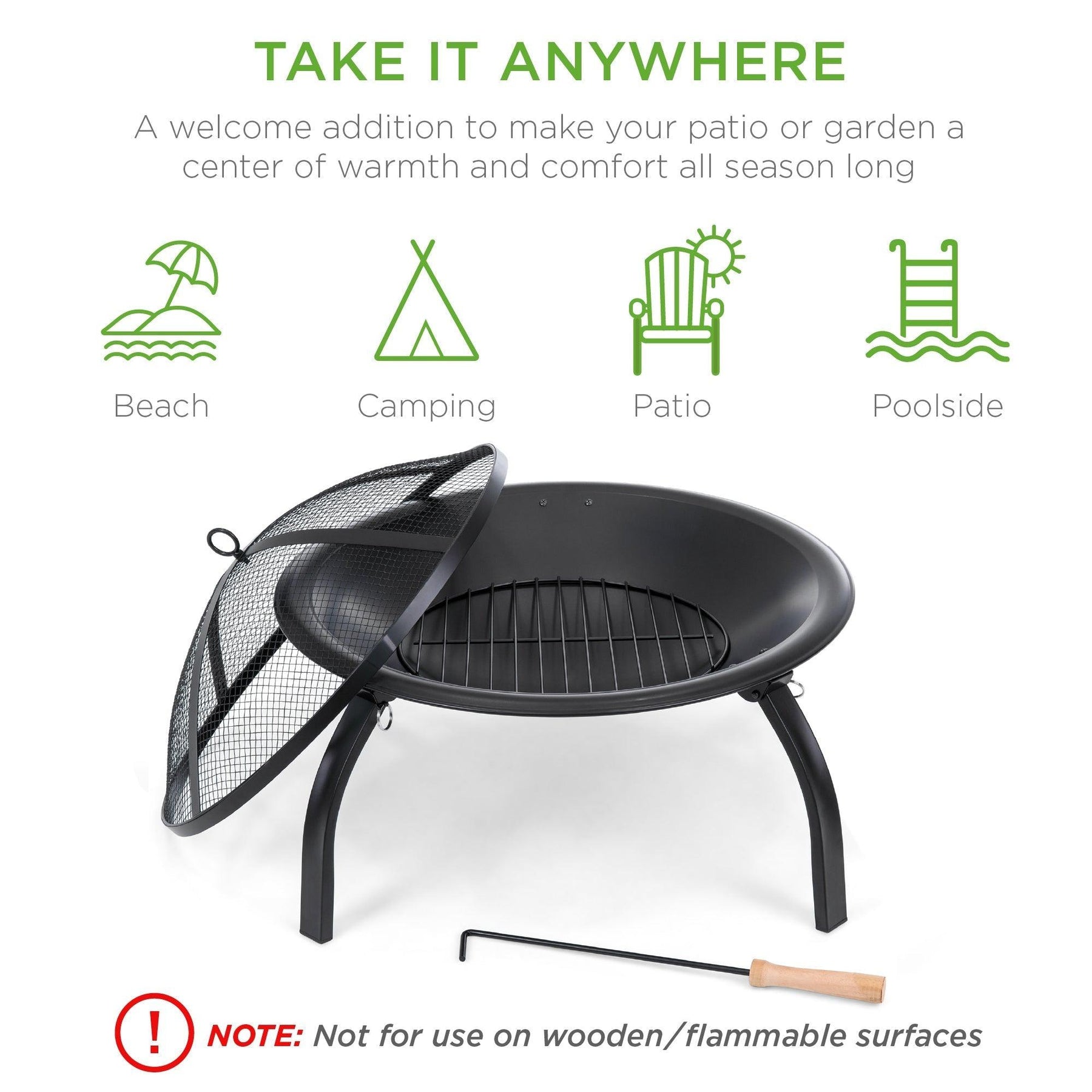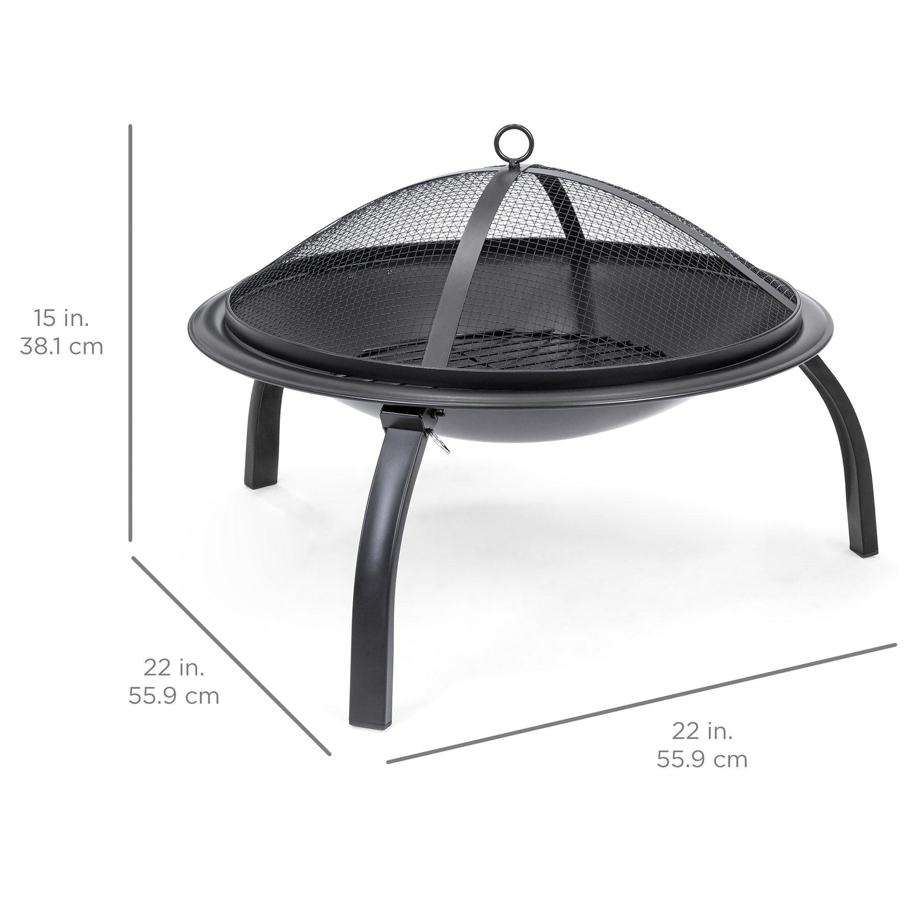 Best Choice Products 22in Fire Pit Bowl, Portable Folding Steel Outdoor Camping Accessory w/ Mesh Cover, Poker