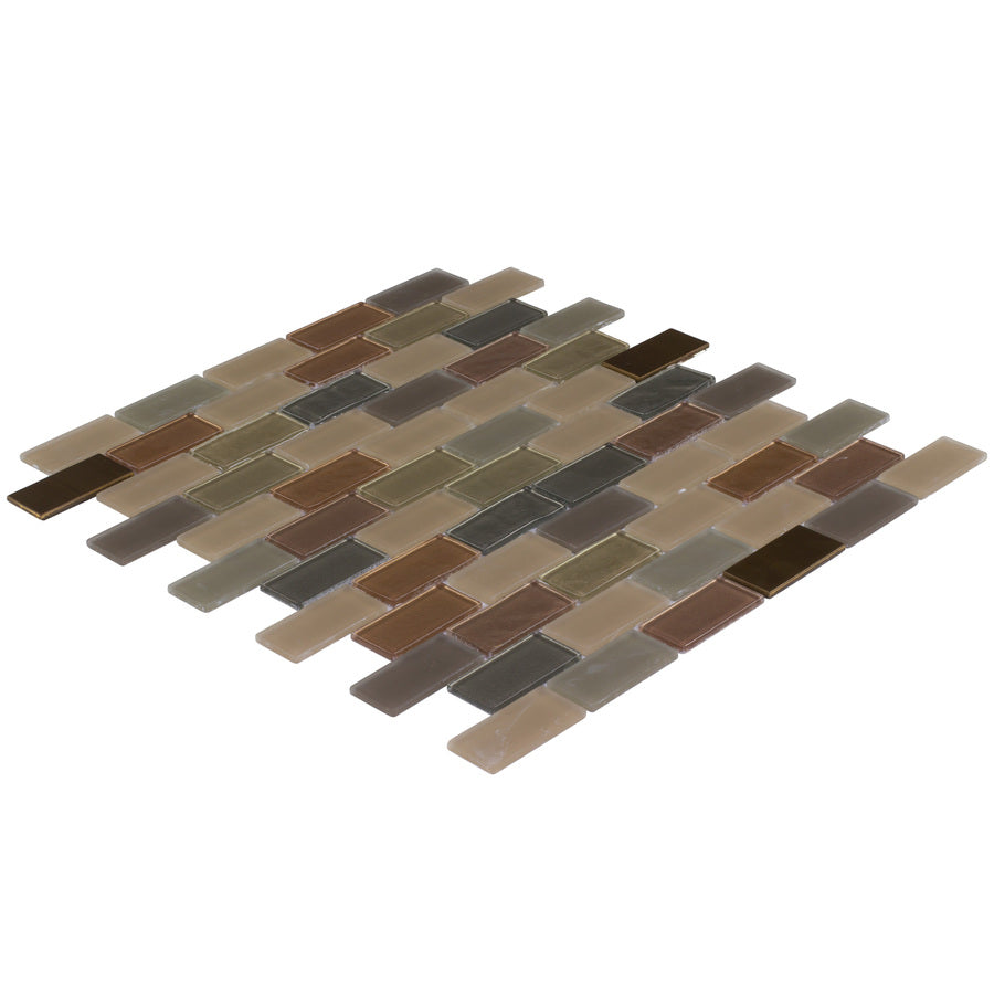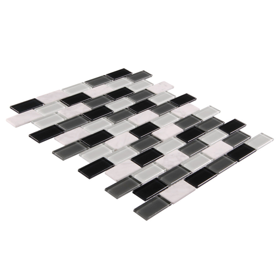 Rectangular shaped, brick patterned mosaic wall tile allows for an elegant, unique look