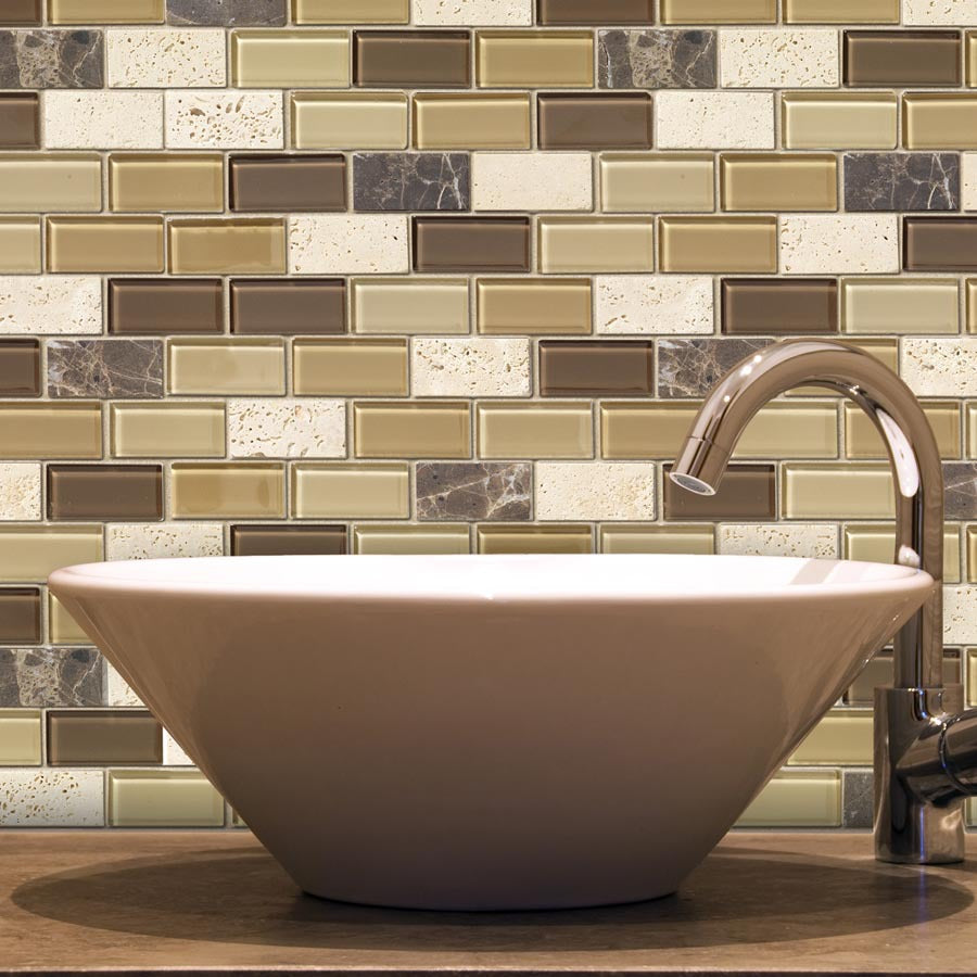 Glossy glass and stone mosaic wall tile is durable and truly unique