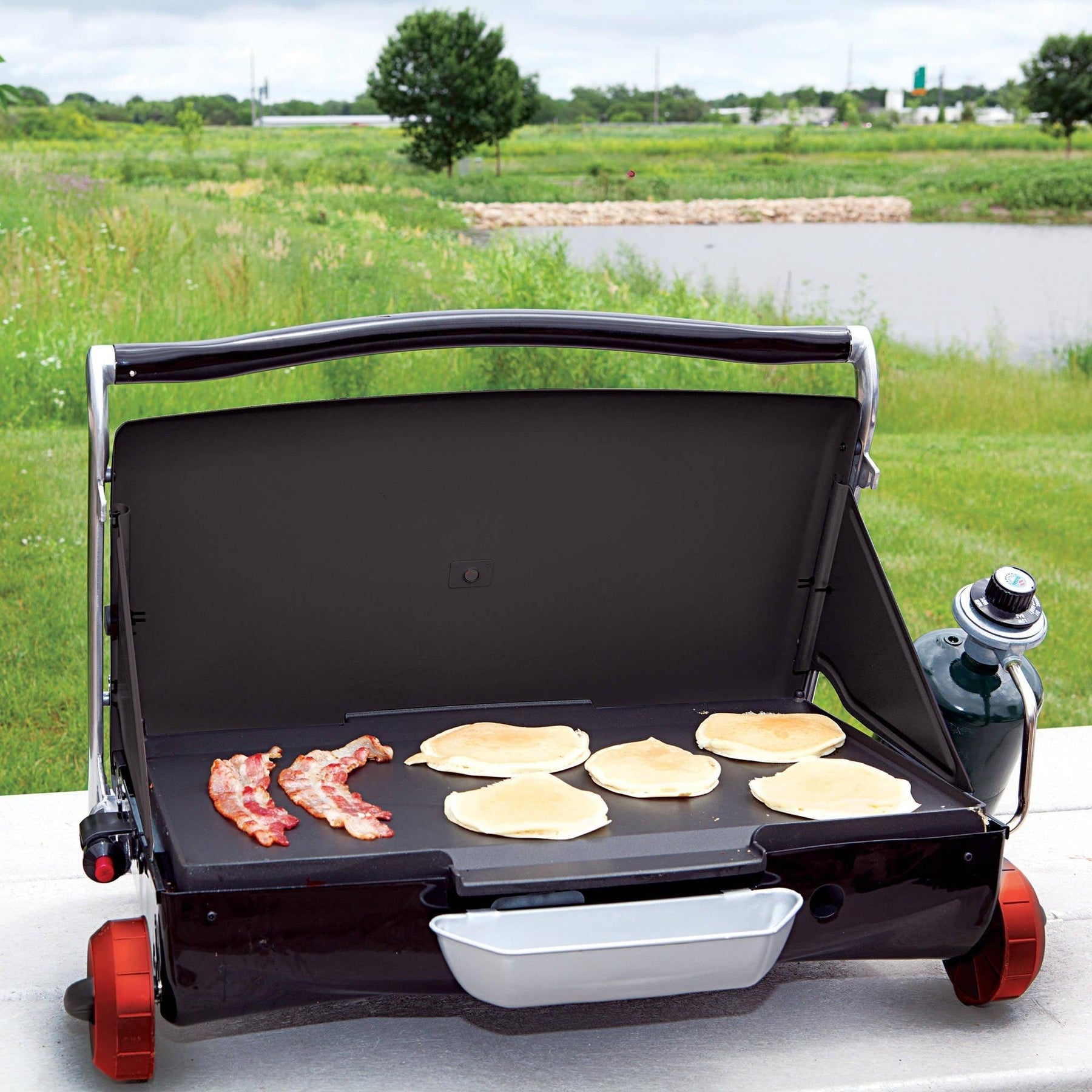 George Foreman GP200R Portable Propane Camp & Tailgate Grill, Portable Gas Grill, Camping Grill, Red