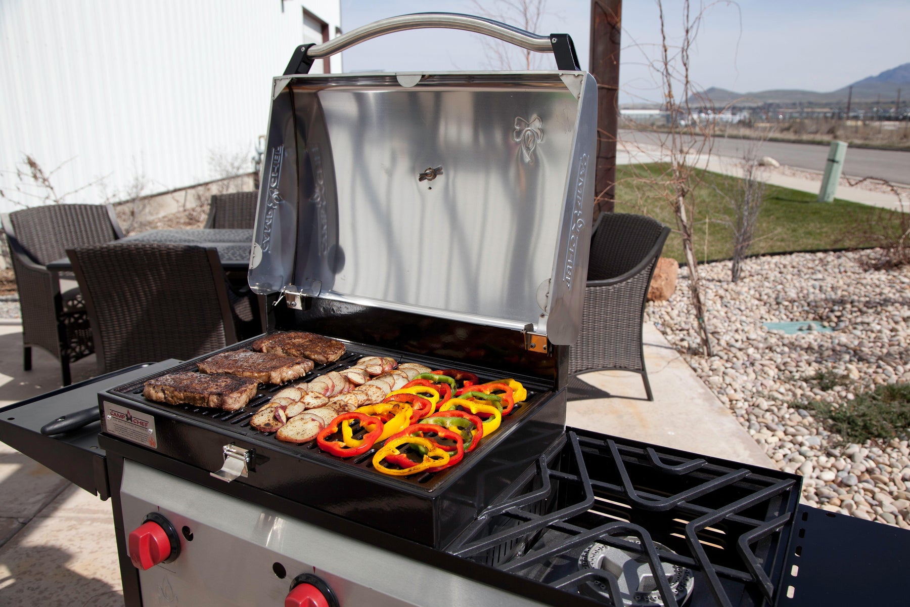 Camp Chef Deluxe Stainless Steel Barbecue Box, Cast Iron Grill Grates, Infrared Flame Diffuser Plate, BB90LS