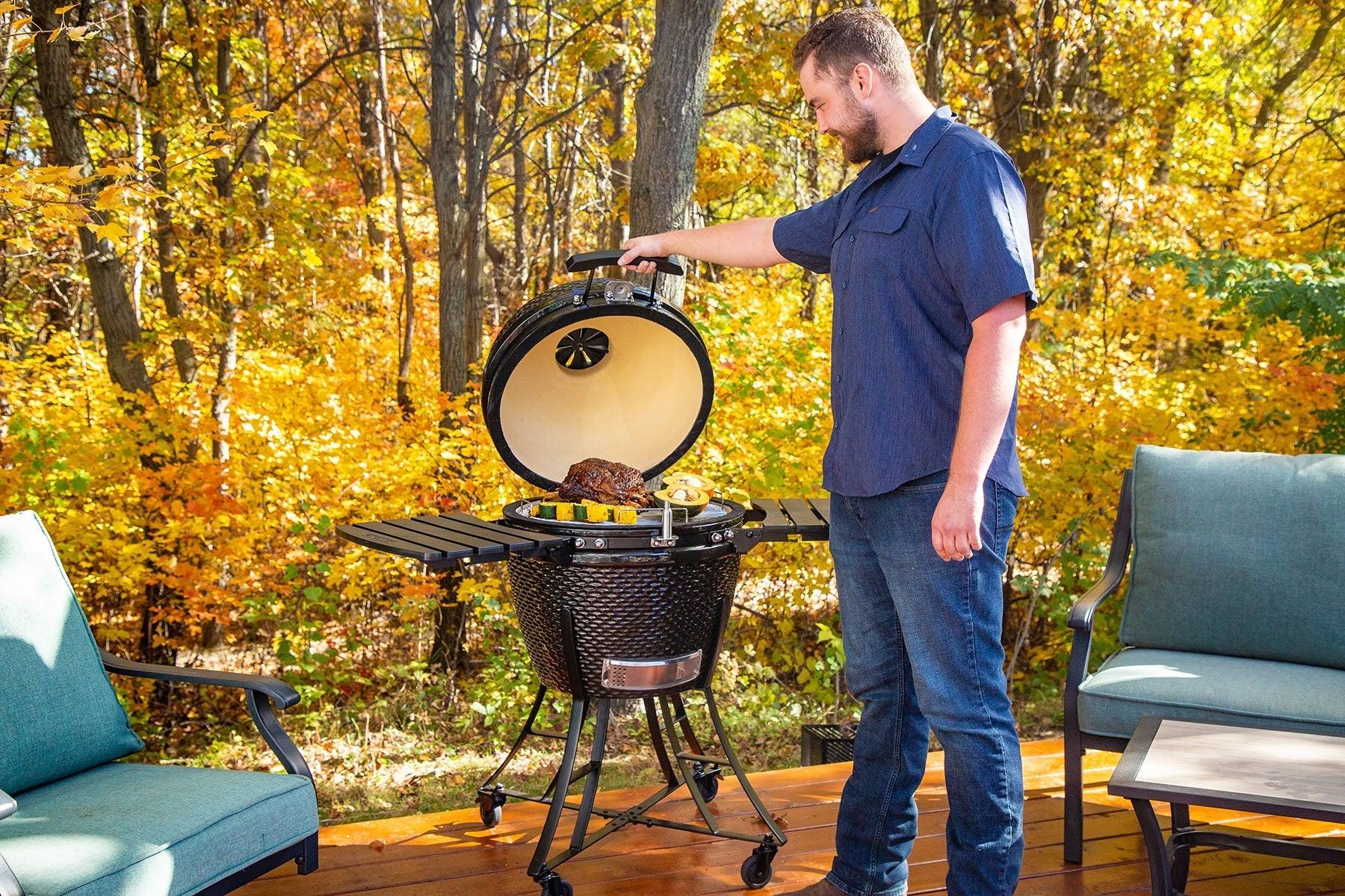 Pit Boss Kamado 24" Ceramic Kamado Black Grill with Side Shelves,71240