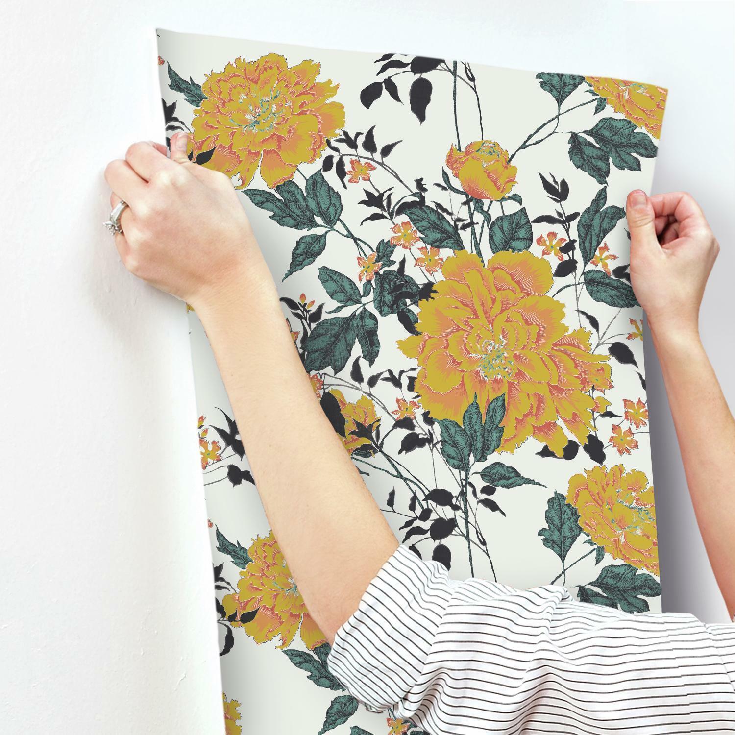Vintage Floral Yellow Peel & Stick Wallpaper by Drew Barrymore Flower Home