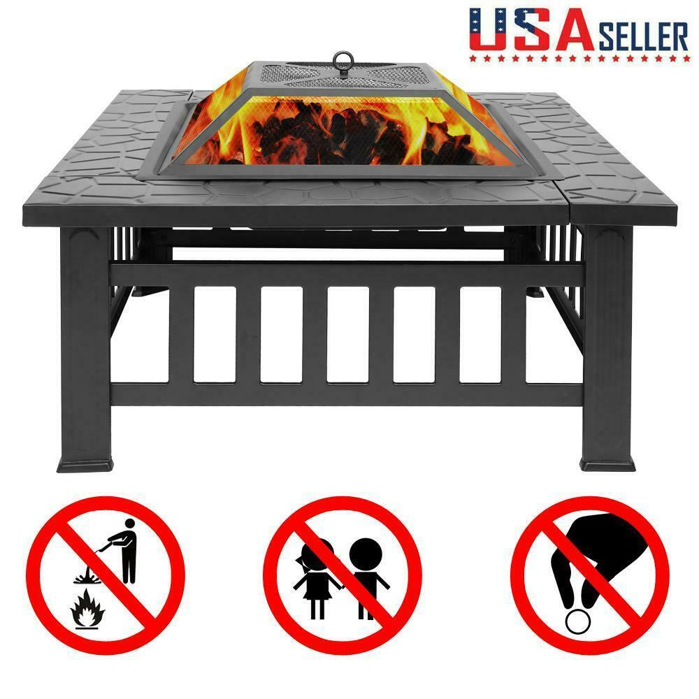 Hottest 32'' Wood Burning Fire Pit Table Outdoor Garden BBQ Grill Bonfire Stove w/ Cover