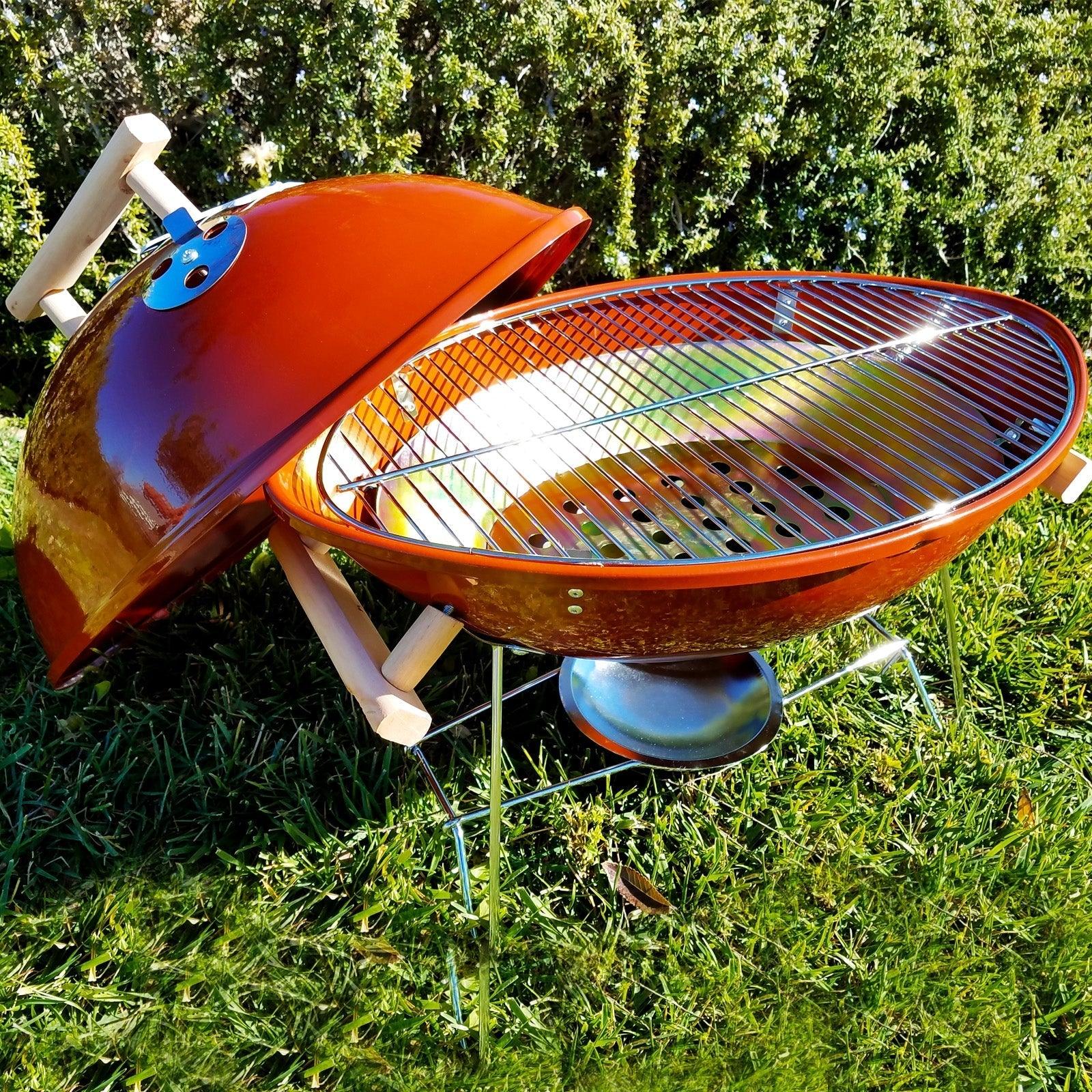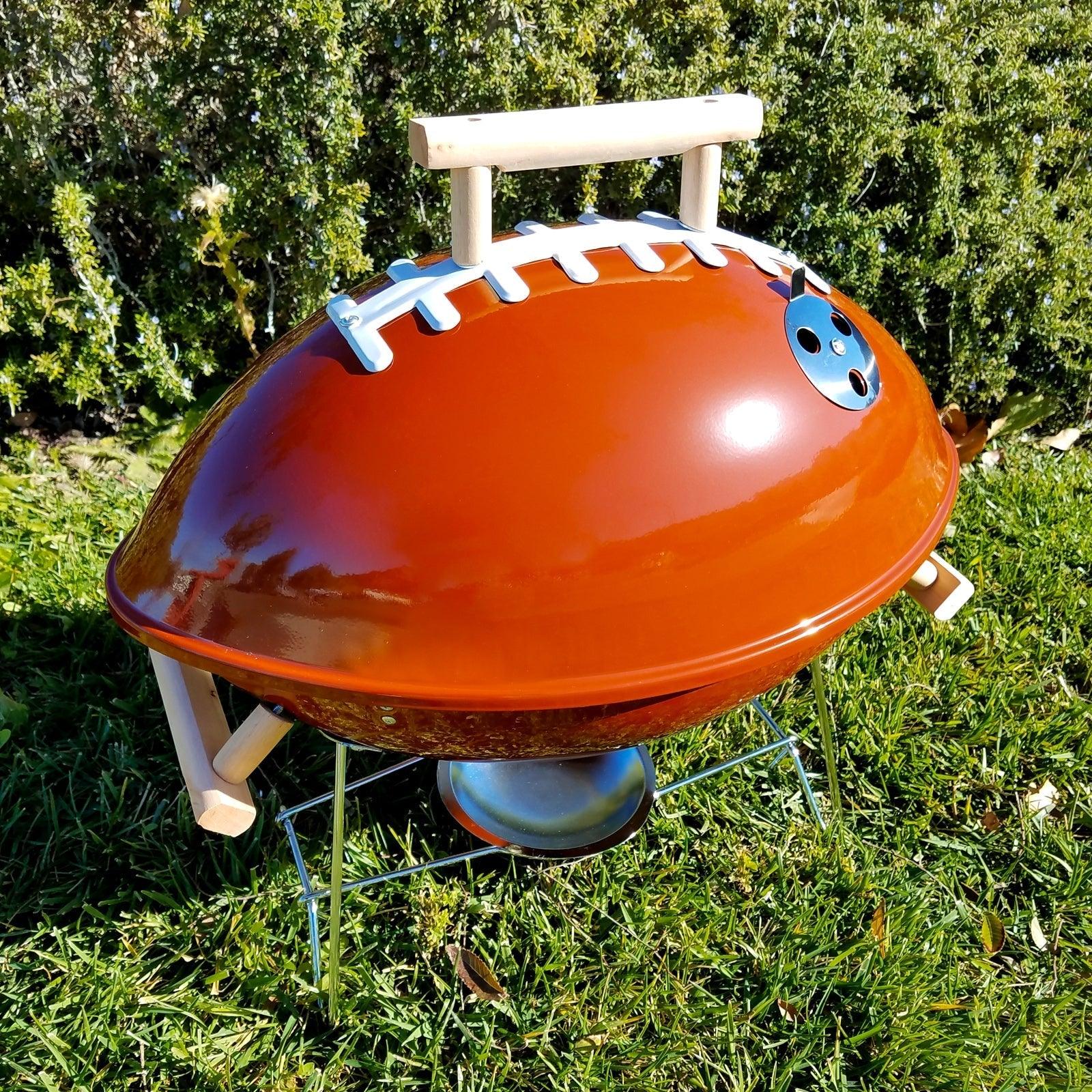 Football BBQ 18" Grill - Brown - Powder Coating - Wood Handle - Steel