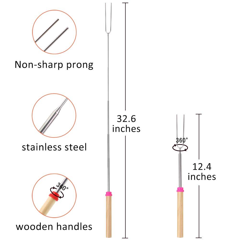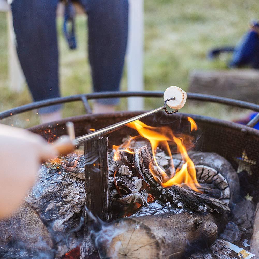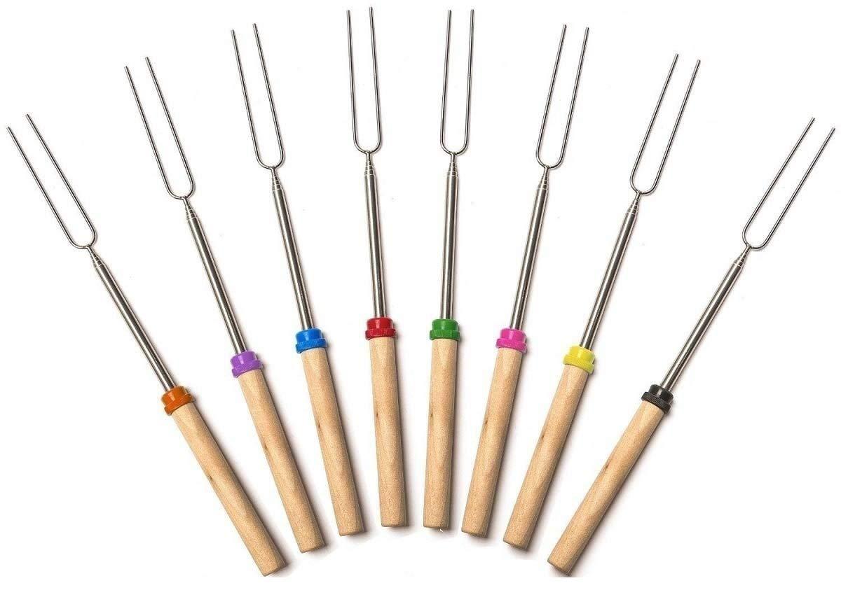 Marshmallow Roasting Sticks- Extendable Barbecue Forks-32-Inch Telescopic Sticks with Wooden Handle for Outdoor BBQ Grill and Campfire Pit 8 Pack