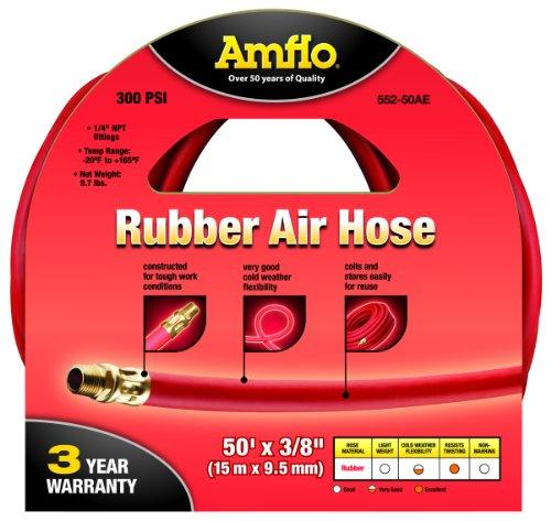 Amflo 552-50AE 50' x 3/8" Red Rubber Air Hose, 1/4” Fittings