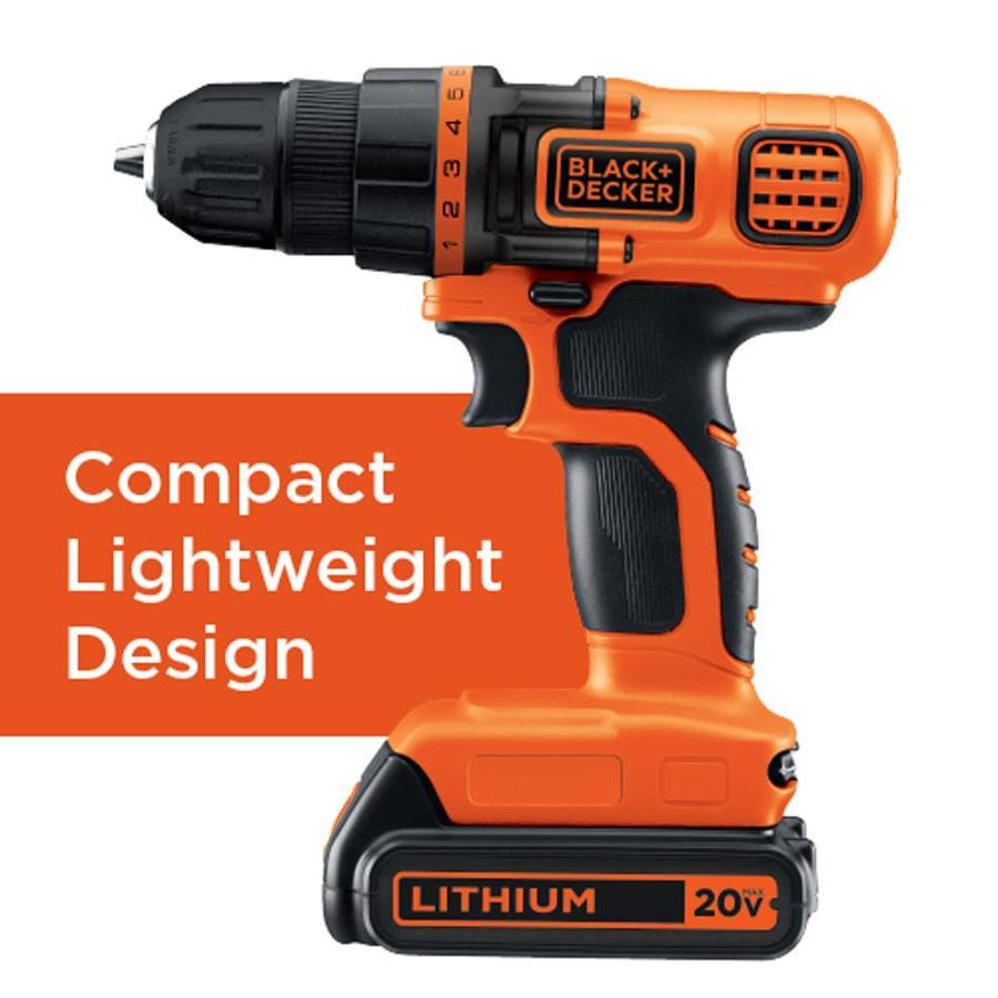 Kit includes LDX120 drill/driver, BDCCS20 circular saw, BDCR20 reciprocating saw, BDCF20 work light, two 20V MAX Li-ion batteries, battery charger, one double-ended bit, a 5-1/2-in circular saw blade and a reciprocating saw blade