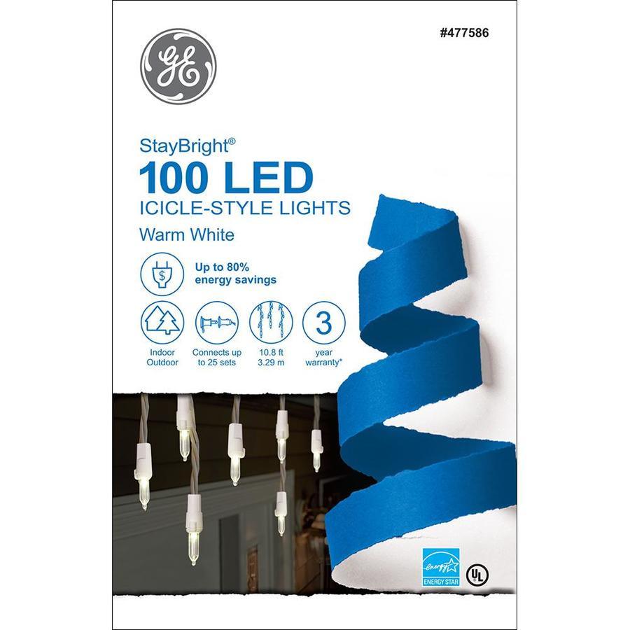 100-Count GE StayBright LED warm white Christmas icicle lights