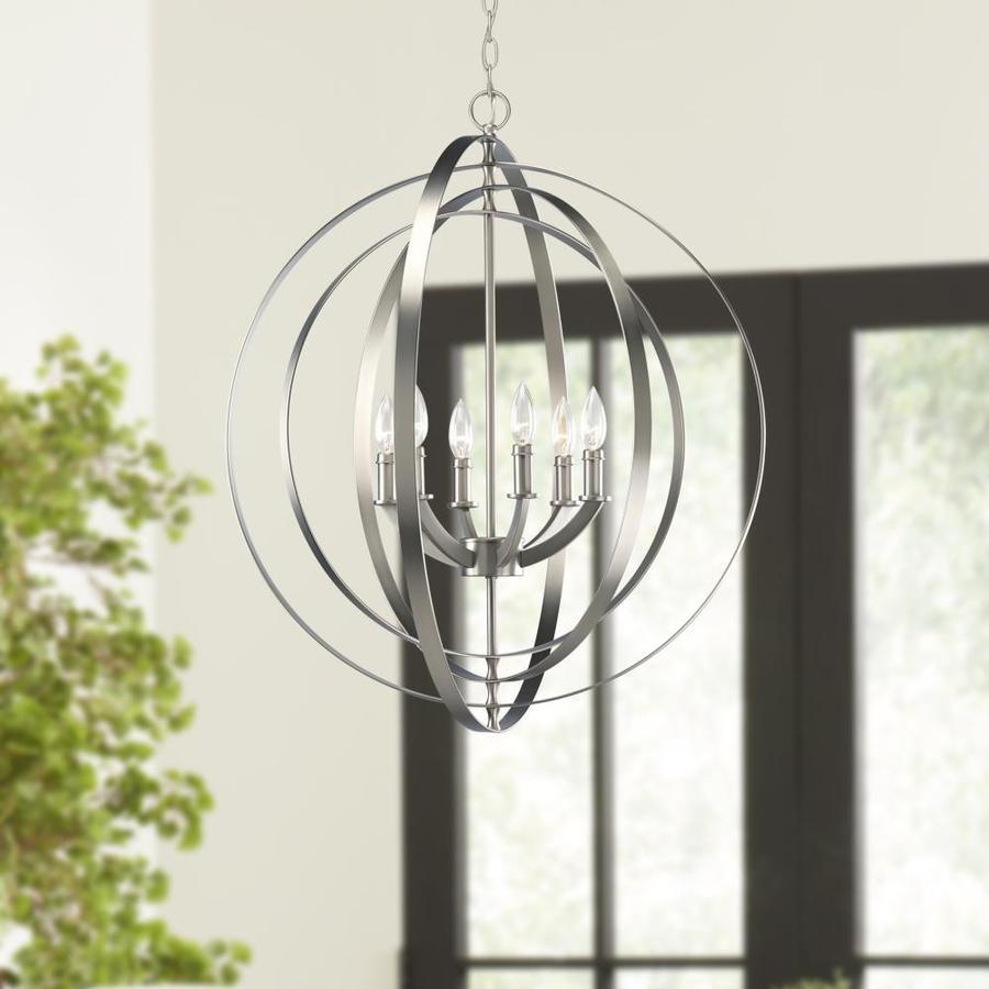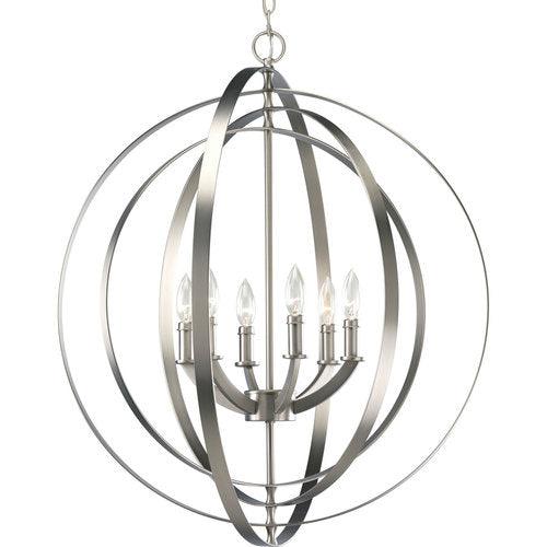 You will love the ethereal lighting design of the Equinox Collection Silver Six-Light Transitional Hanging Pendant Light ideal for any dining room, kitchen, or foyer
