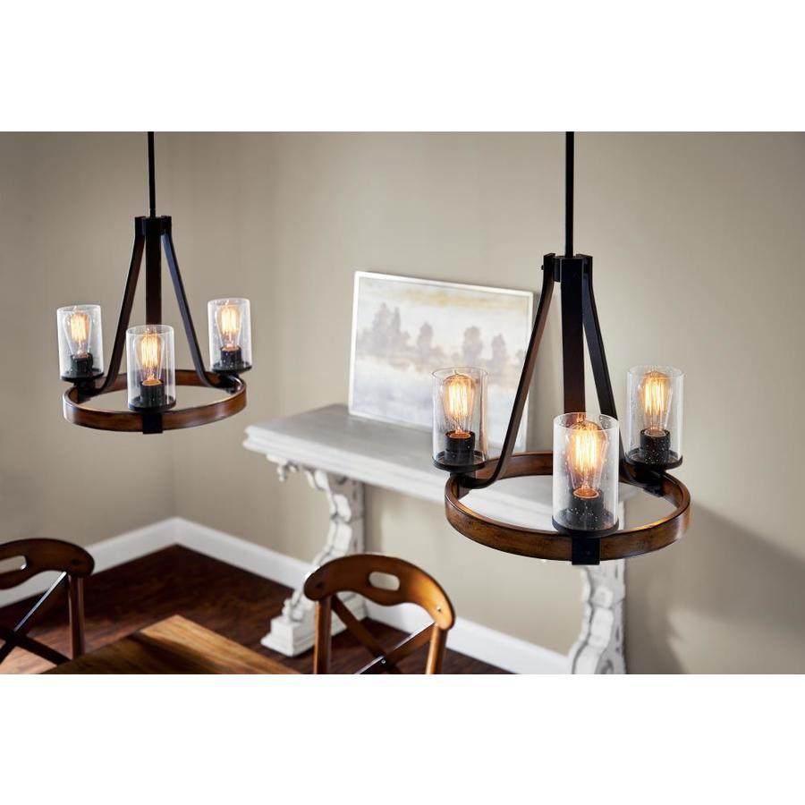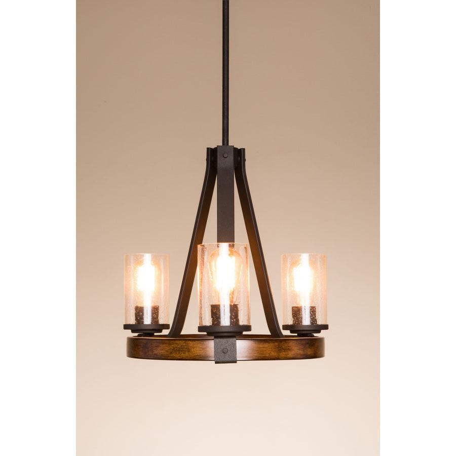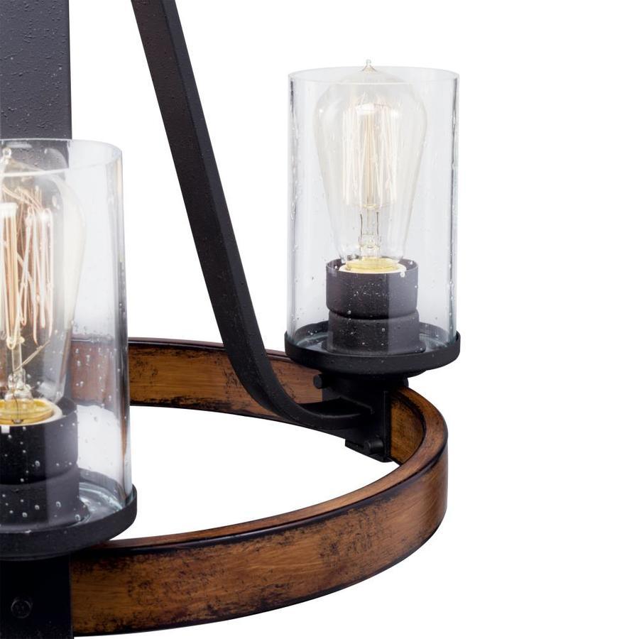 Distressed black and wood tone finish chandelier from the Barrington collection offers a touch of rustic elegance